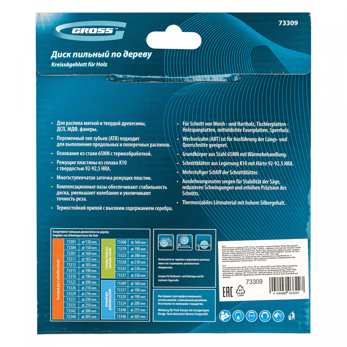 Пильный диск по дереву 160 x 20/16 x 48Т Gross