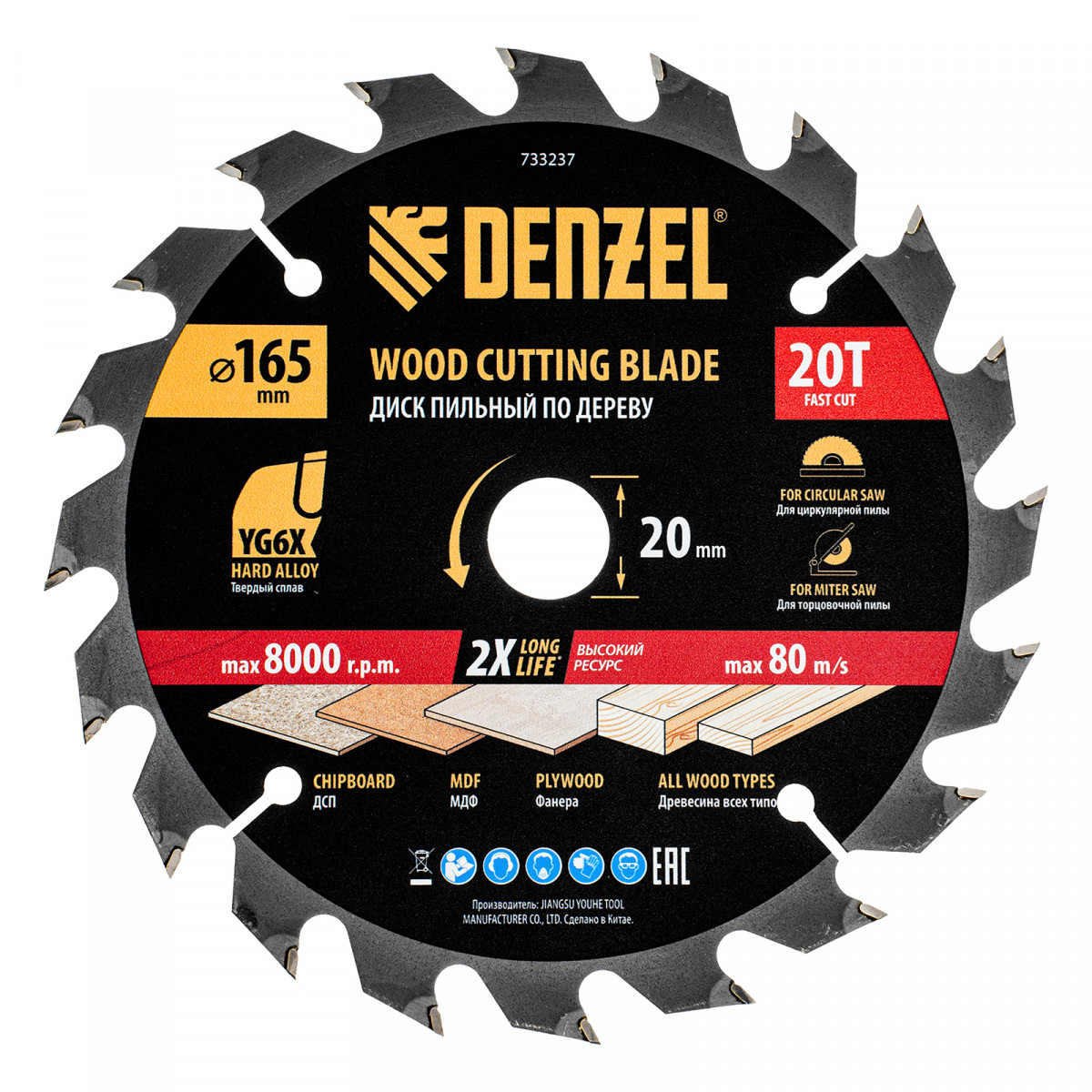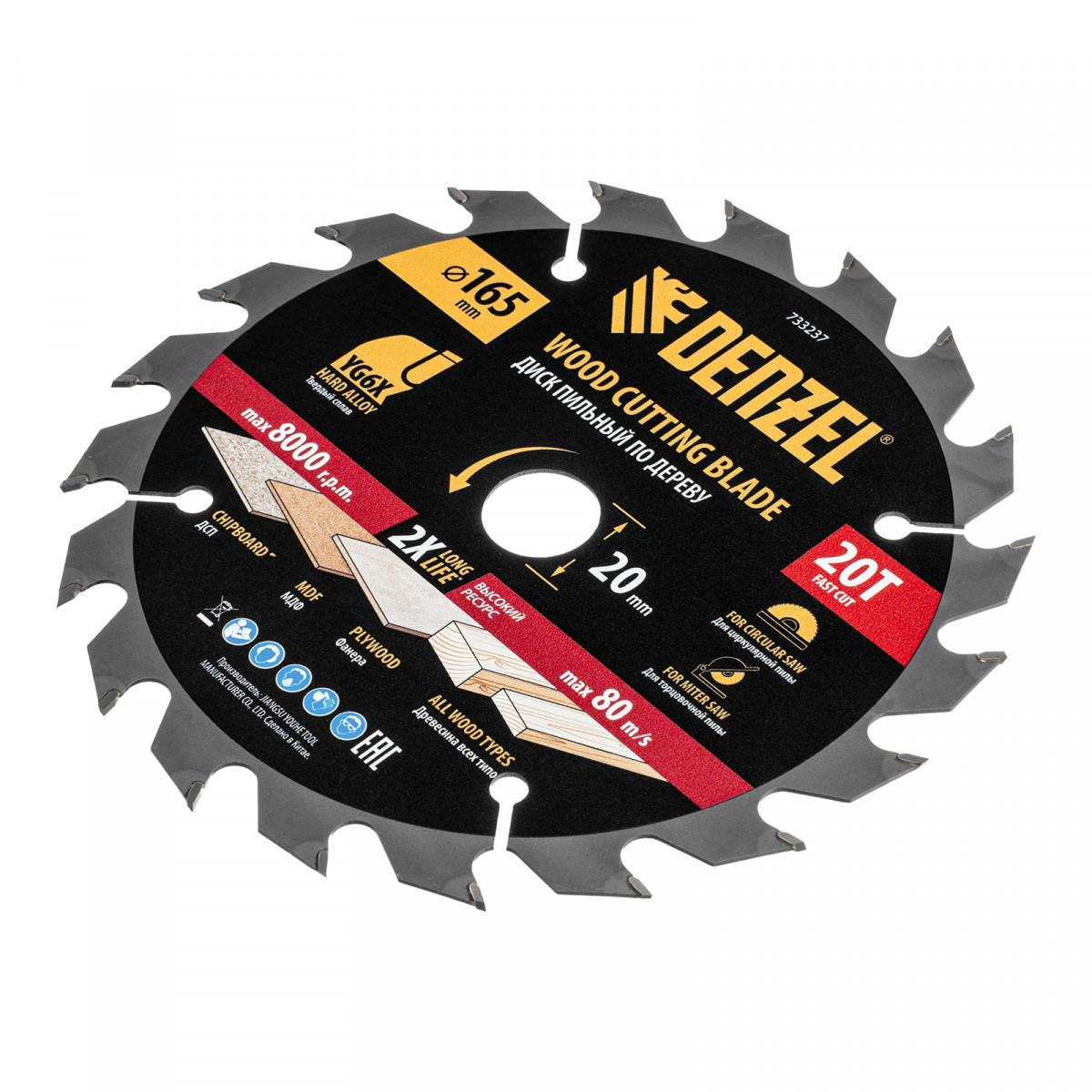 Пильный диск по дереву ф165 х 20 мм, 20 зубьев Denzel