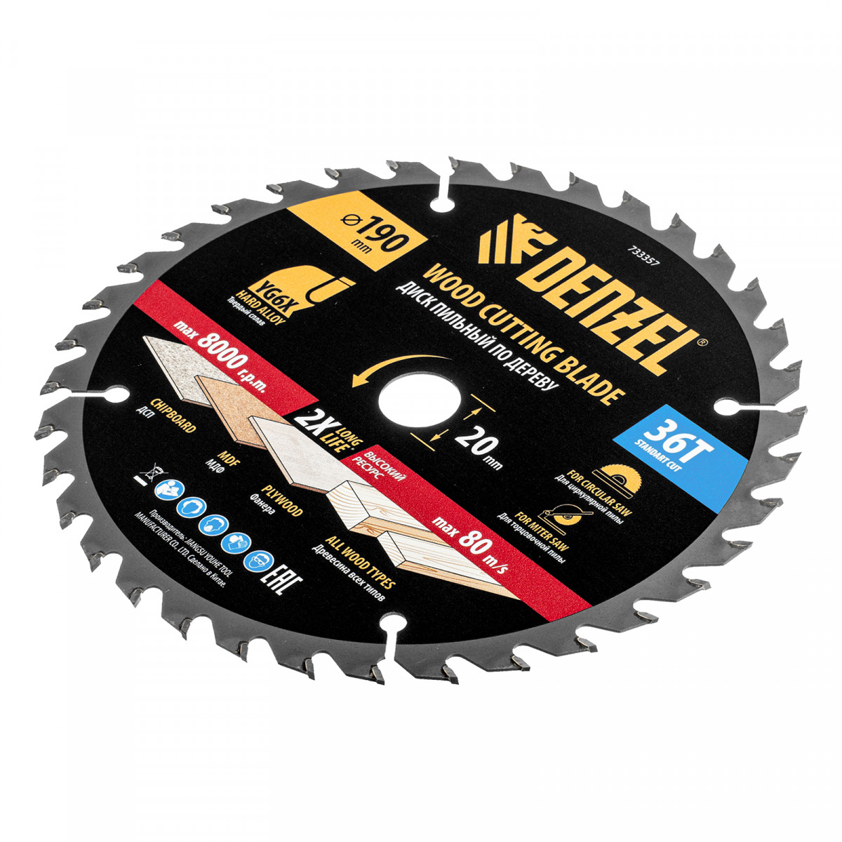 Пильный диск по дереву ф190 х 20 мм, 36 зубьев Denzel
