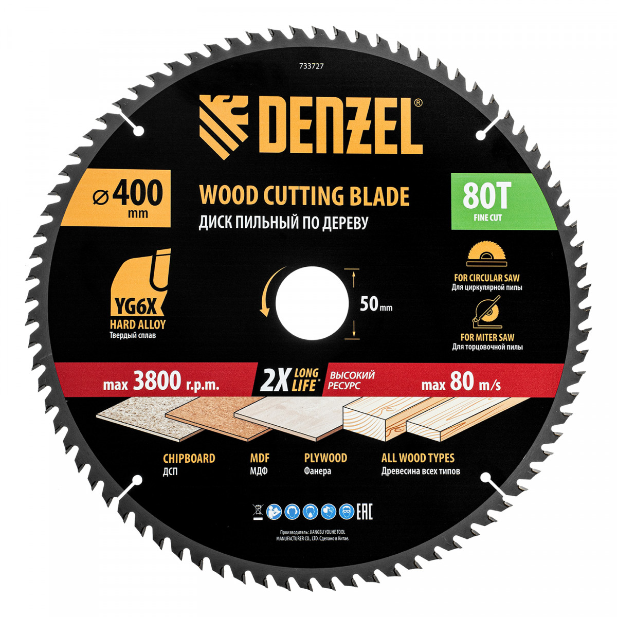 Пильный диск по дереву ф400 х 50 мм, 80 зубьев Denzel