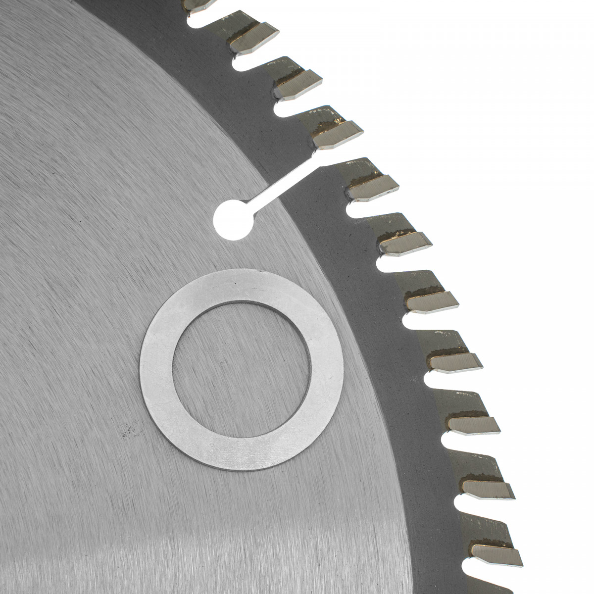 Пильный диск Denzel 733877 диаметром 250 x 30 мм, с 80 зубьями, используется для точного распиливания ламината, ЛДСП, МДФ, фанеры, паркетной доски. 80 мелких трапециевидно-плоских зубьев с положительным углом заточки позволяют эффективно решать поставленные задачи, обеспечивая максимально чистый рез. Диск устанавливается на циркулярную или торцовочную пилу, а также на распиловочный станок. Можно установить оснастку на инструмент с другим посадочным диаметром — для этого предусмотрено переходное кольцо 30/20 мм.