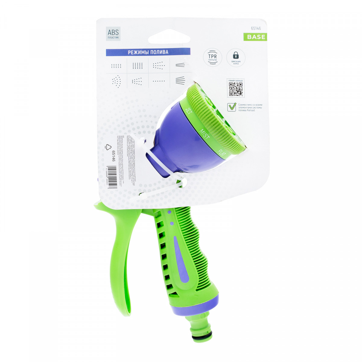 Пистолет-распылитель Palisad 65146 с 8 режимами работы предназначен для использования с любой из поливочных систем ТМ Palisad. Он повышает удобство и скорость работы при орошении растений, газонной травы, очищении садовых дорожек, мойке инструментов и др. работ, поэтому пригодится коммунальщикам и дачникам. Приспособление обеспечивает комфортную работу в 8 режимах: мелкодисперсном, конусном, сочащемся, распылении типа «туман» или душ, подаче жесткой, двойной плоско-вертикальной/горизонтальной струи.