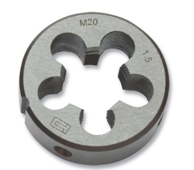 Плашка изготовлена из инструментальной стали. Твердость режущих кромок 60 HRc, что соответствует требованиям ГОСТа (ГОСТ 60–62 HRc). Используется для нарезания внешней резьбы.