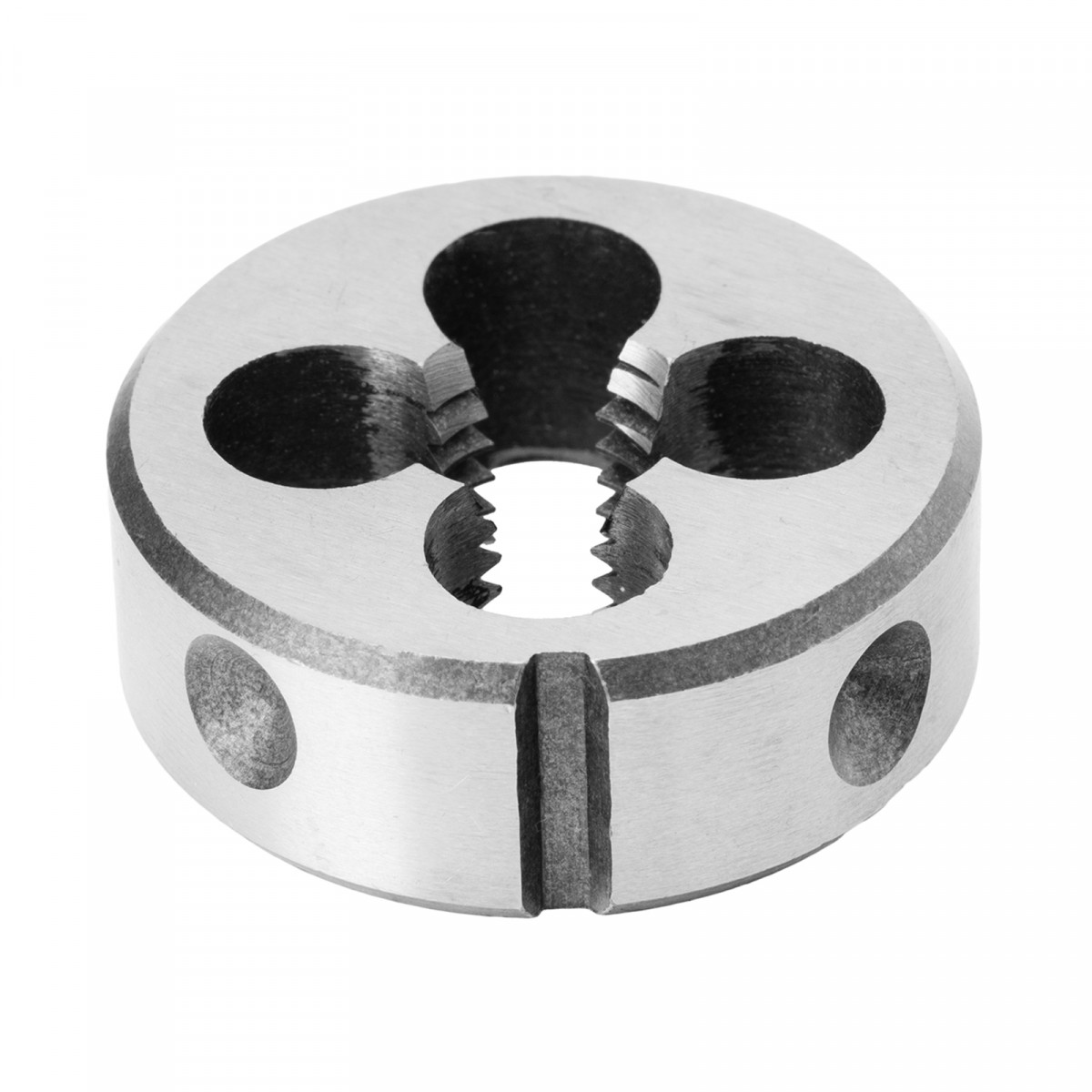 Плашка Matrix 77096 типоразмера М12 х 1,75 мм, из стали HSS, — резьбонарезной инструмент, предназначенный для восстановления старой или создания новой внешней метрической резьбы на металлических деталях. Для эксплуатации плашки не требуются особые навыки, что позволяет выполнять слесарные и монтажные работы в домашних условиях. Цельный корпус обеспечивает жесткое сцепление с деталью для получения высококачественной резьбы.