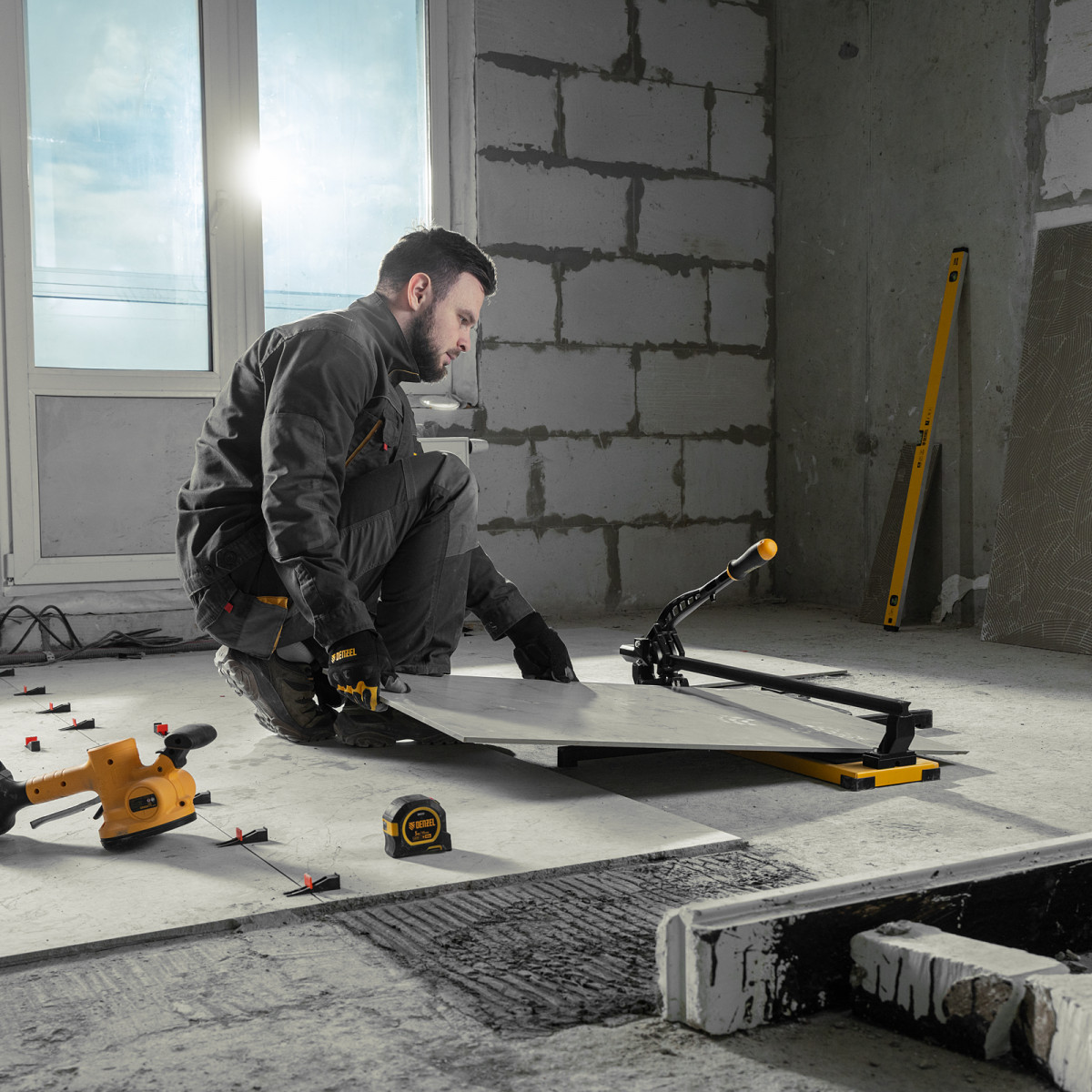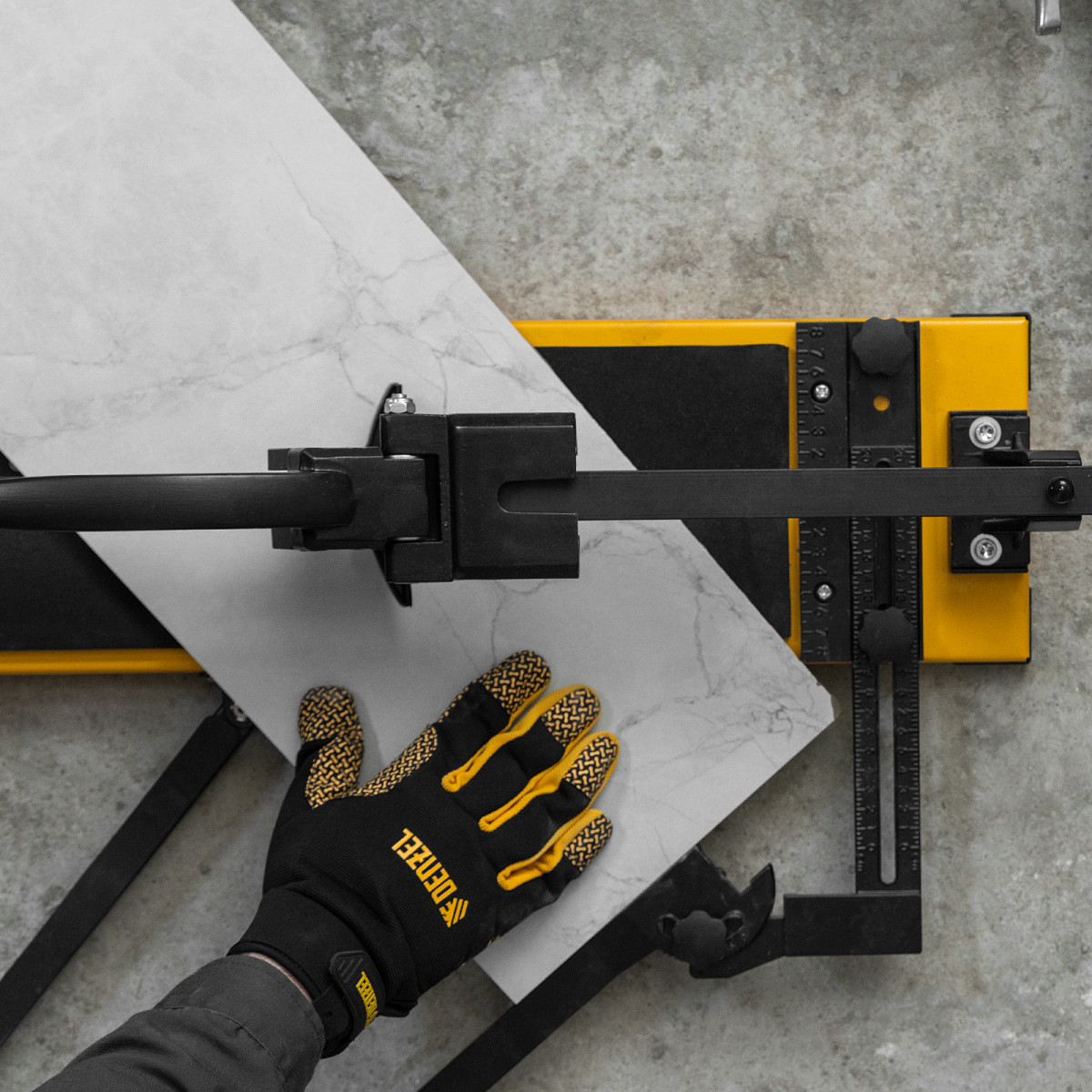 • Удобная работа — благодаря противоскользящим накладкам плиткорез не смещается даже на гладких поверхностях.