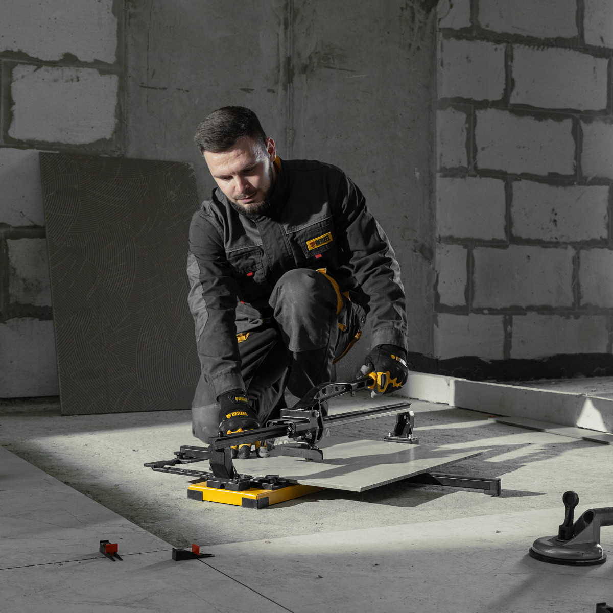 • Эргономичность — плитколом с магнитным держателем не создает помех во время резки.