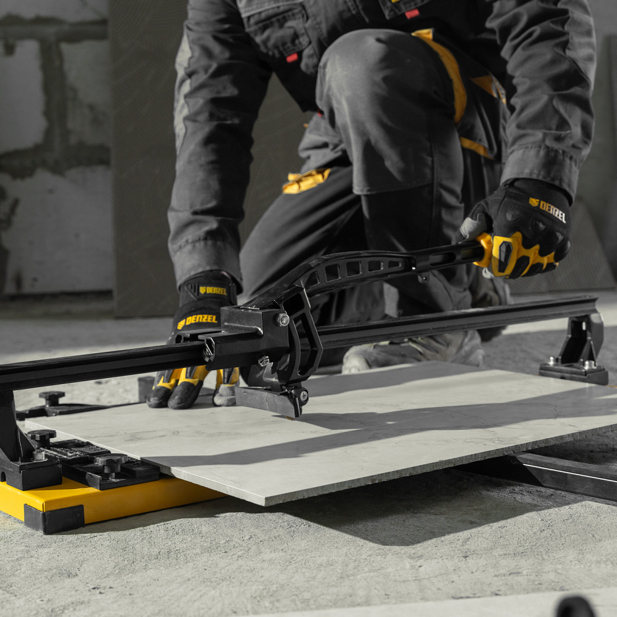 Плиткорез рельсовый 600х16мм, каретка на подш., стальная станина, усил. рукоятка-пенал Denzel