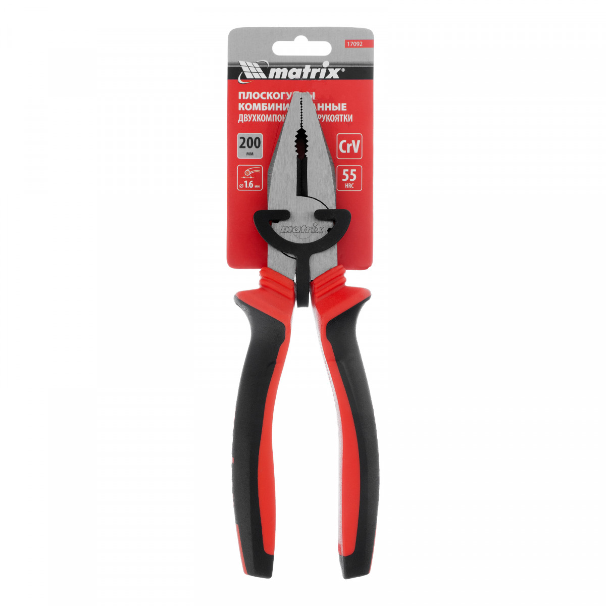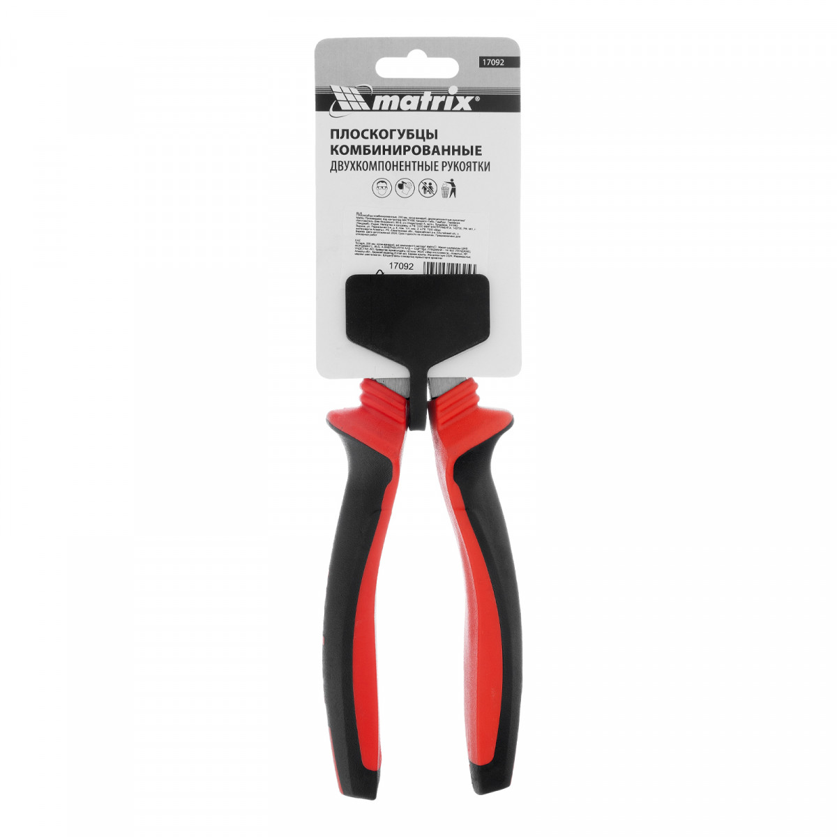 Плоскогубцы комбинированные, 200 мм, хром-ванадий, двухкомпонентные рукоятки Matrix