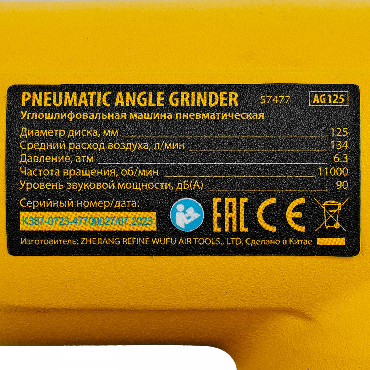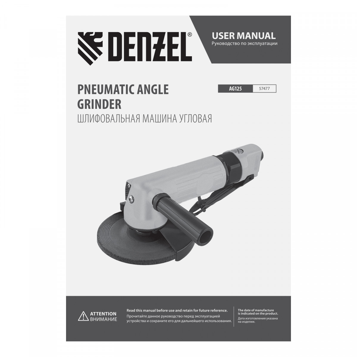 Пневматическая углошлифовальная машина AG125, 11000 об/мин, 125 мм, 186 л/мин Denzel