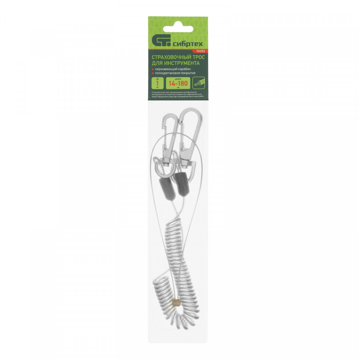 Подвес для инструмента Сибртех 90282 со стальным сердечником, нержавеющими застежкой и кольцом, предотвращает падение инструмента весом до 1 кг во время выполнения работ на высоте. Растягивается до 165 см, поэтому даже на вытянутой руке с инструментом комфортно работать. Пригодится на строительной площадке.