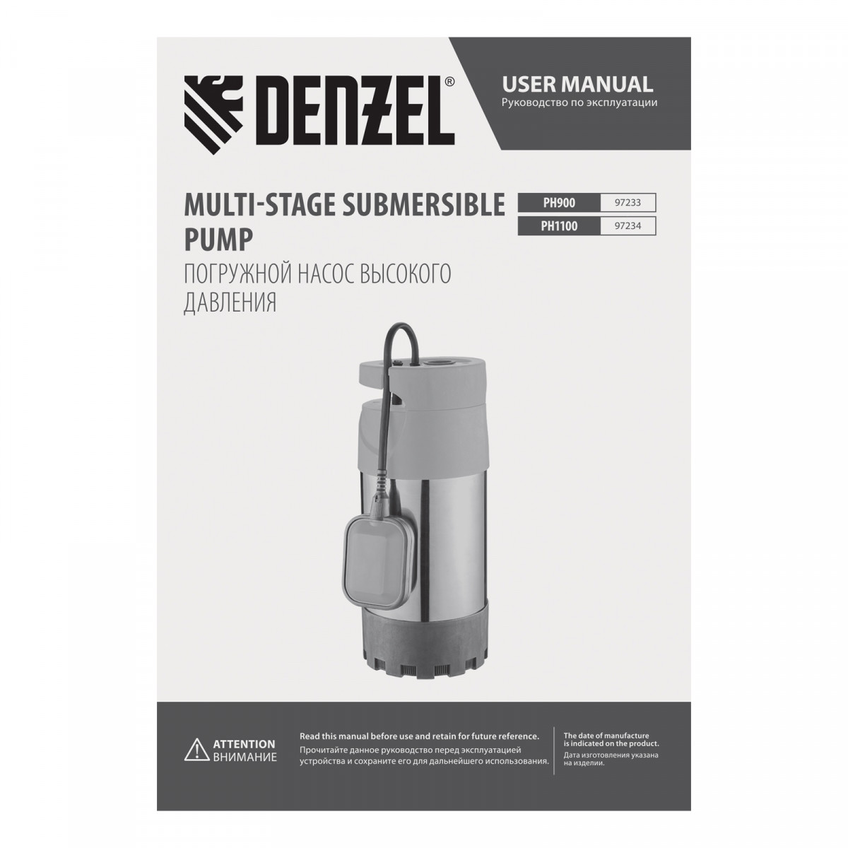 Погружной насос высокого давления PH900, X-Pro, подъем 30 м, 900 Вт, 5500 л/ч Denzel