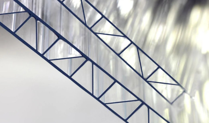 Методика производства сотового поликарбоната позволяет создавать поликарбонатные панели с очень тонкими стенками и малым весом без потери ударопрочных характеристик. Ячеистый листовой поликарбонат содержит воздух, который располагается в пустотах между слоями листа поликарбоната. Именно воздух обеспечивает высокие теплоизоляционные свойства продукции, а ребра жесткости - большую конструктивную прочность по отношению к весу.