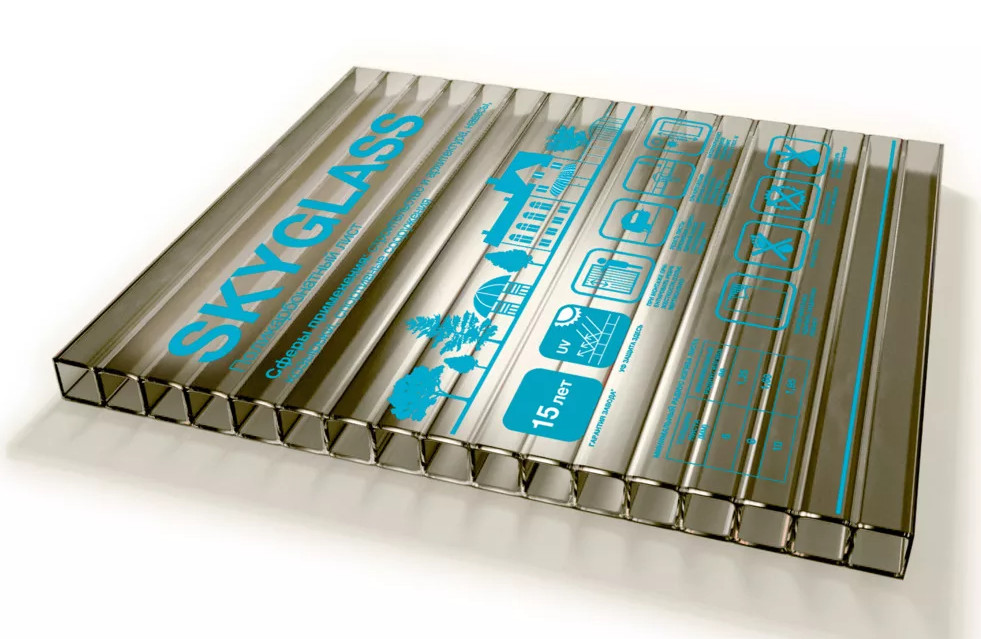 Сотовый поликарбонат SKYGLASS — представляет марку, отличающуюся оптимальным соотношением цены и качества, с защитой от UV-излучения 30 мкм.Кроме того, стоит отметить дополнительные преимущества сотового поликарбоната SKYGLASS, которые гарантируют длительный срок службы в любых сферах его применения: