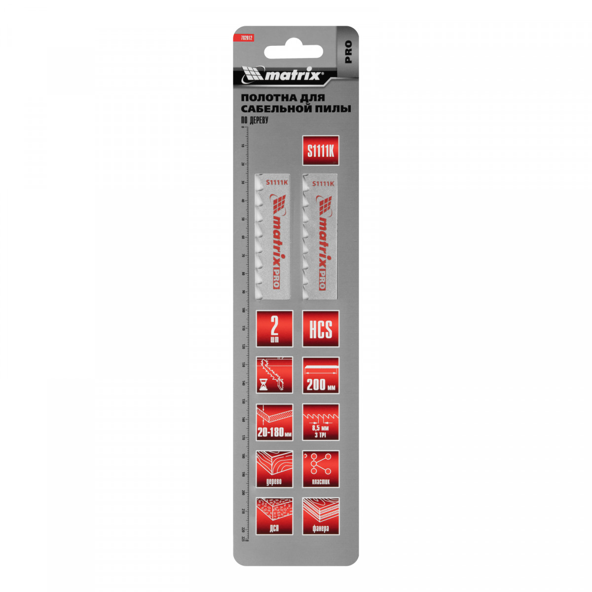 Полотна по дереву для сабельной пилы S1111K 200/8.5 мм, HCS, 2 шт, Pro Matrix