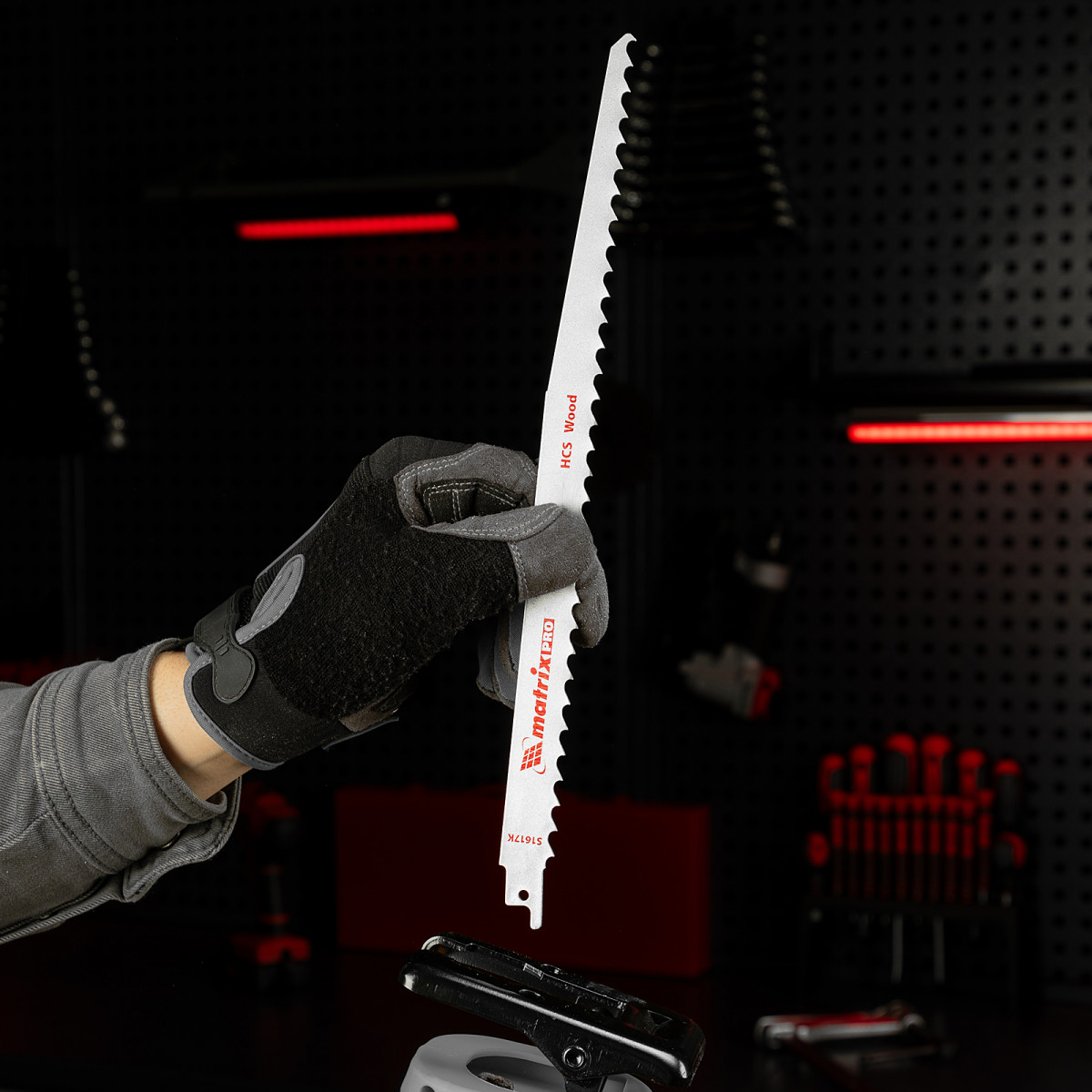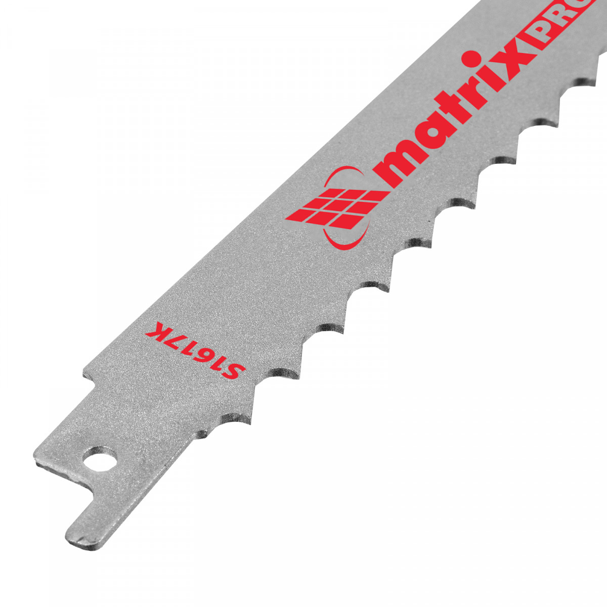 Полотна по дереву Matrix S1617K PRO 782007 с рабочей длиной 275 мм и шагом зубьев 8,5 мм, из стали HCS, 2 шт. в упаковке, — оснастка для сабельной пилы. Применяются для работ по дереву, фанере, ДВП, ДСП, пластику. Толщина пропила составляет от 5 до 250 мм. Полотна позволяют производить прямой быстрый рез. Универсальные хвостовики совместимы с сабельными электропилами ведущих производителей. Изделия будут полезны во время строительства, ремонта, а также пригодятся для работы на дачном участке.