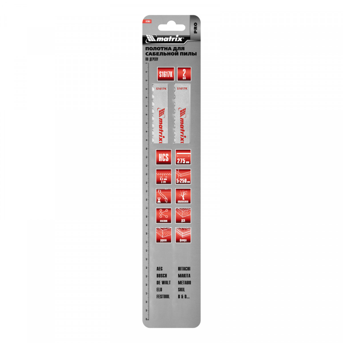 Полотна по дереву для сабельной пилы S1617K 275/8.5 мм, HCS, 2 шт, Pro Matrix