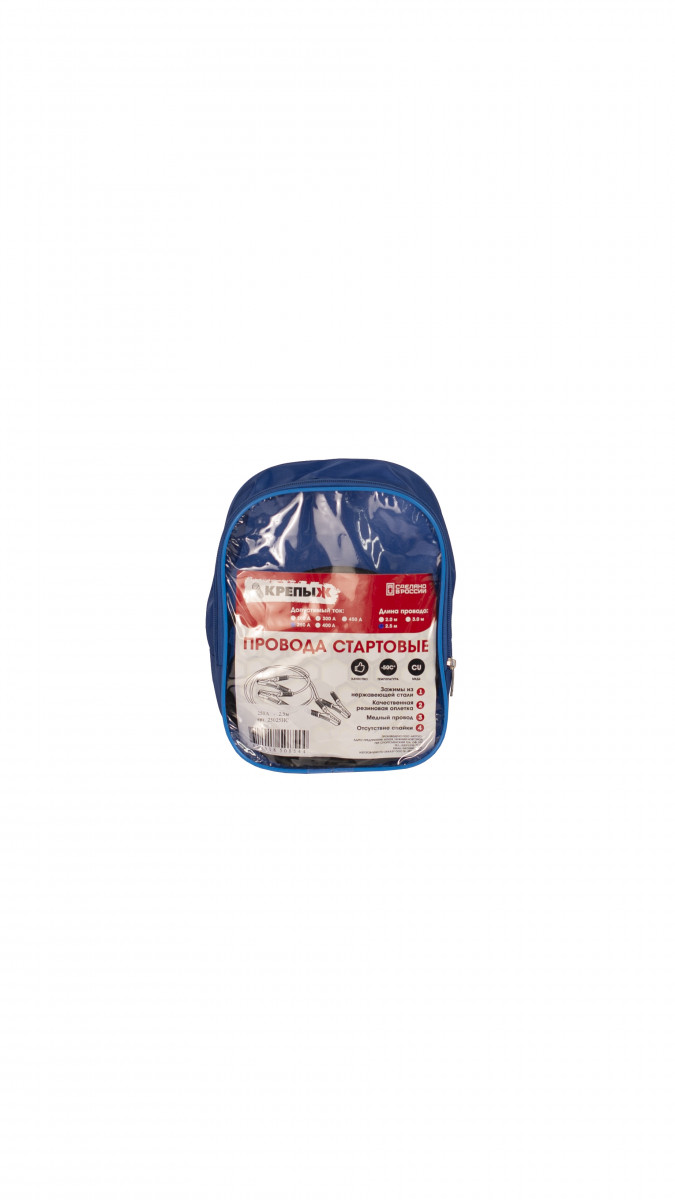 Провода стартовые КРЕПЫЖ нержавейка 250 Ампер длина 2,5 метра в сумке