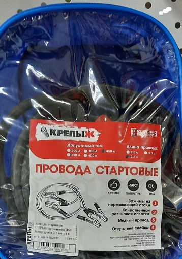 Провода стартовые КРЕПЫЖ нержавейка 450 Ампер длина 2,5 метра в сумке