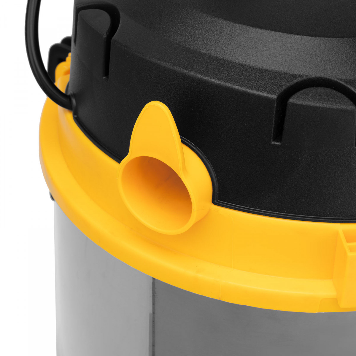 Пылесос строительный Denzel SVC15 28201 мощностью 1200 Вт, с баком объемом 15 л и шлангом длиной 2 м, предназначен для уборки бетонной, кирпичной пыли, опилок, стружки, также предусмотрена функция сбора воды. Пылесос используется во время проведения строительных и ремонтных работ, будет полезен для поддержания чистоты в мастерской, гараже, производственном помещении.