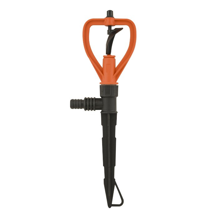 Распылитель оснащен вращающимся лепестком, обеспечивающим равномерный полив территории.
