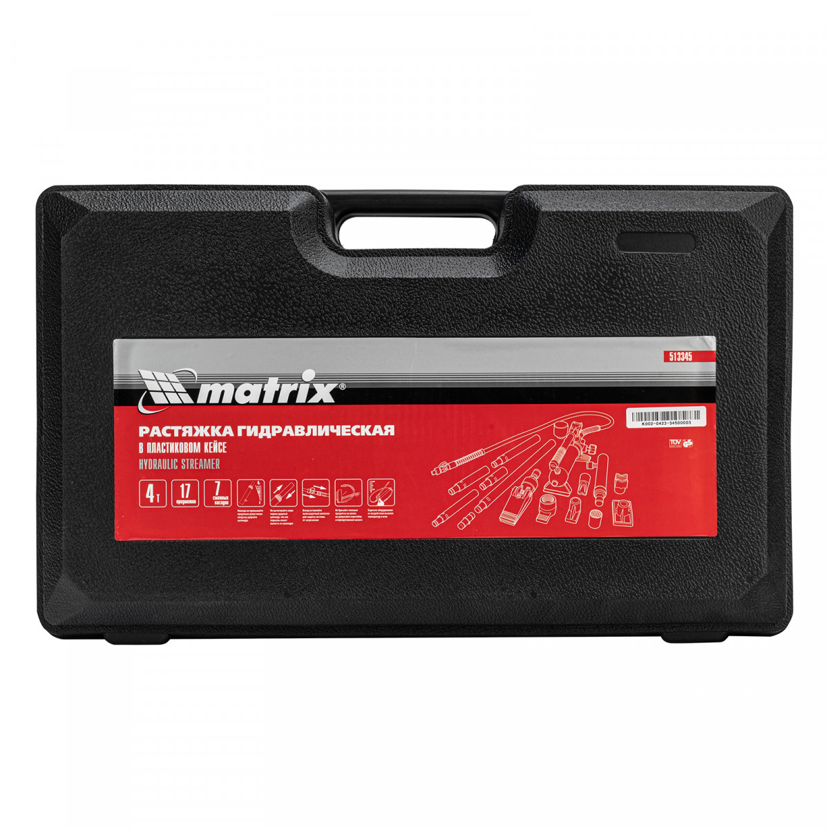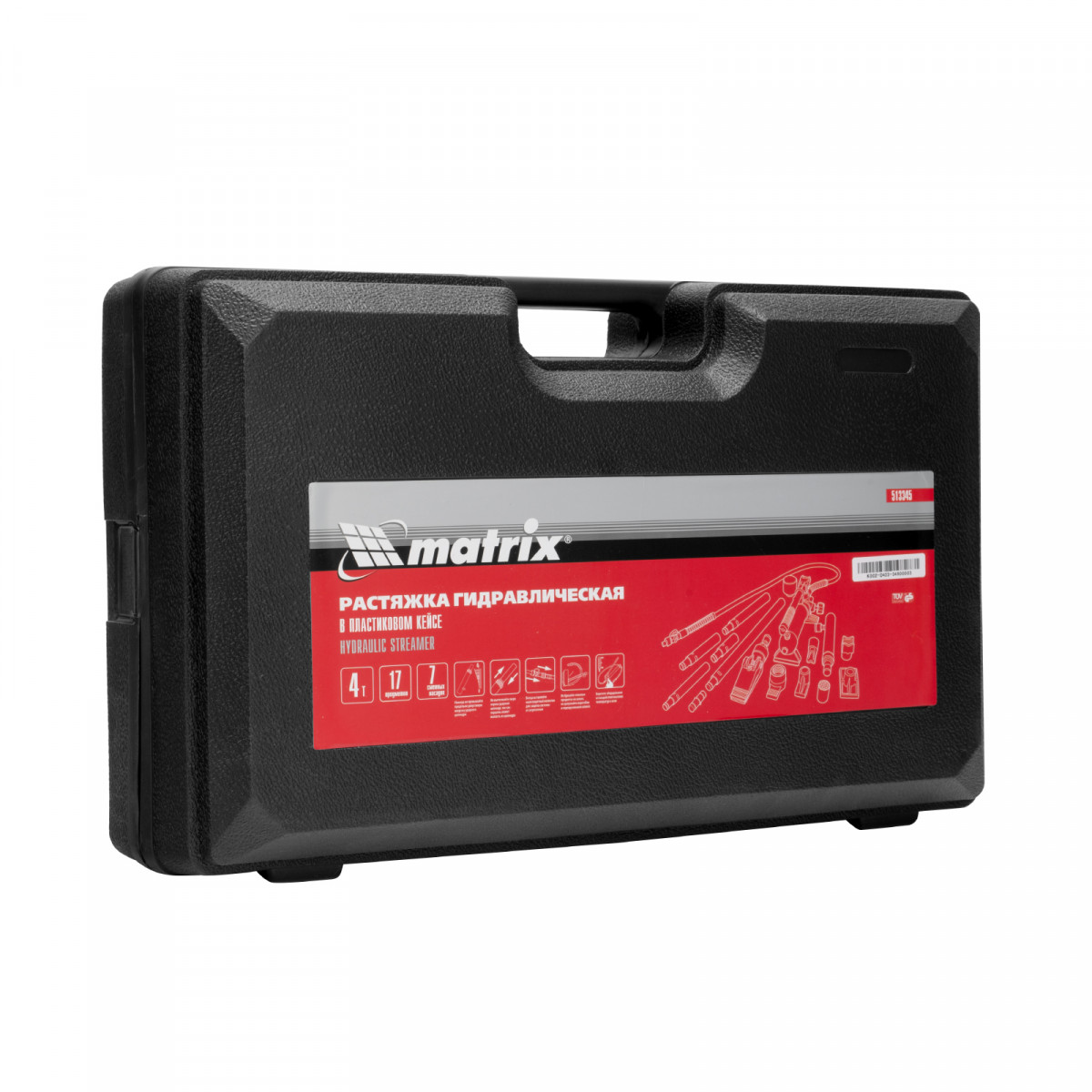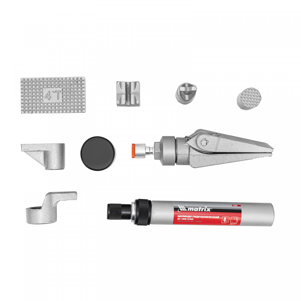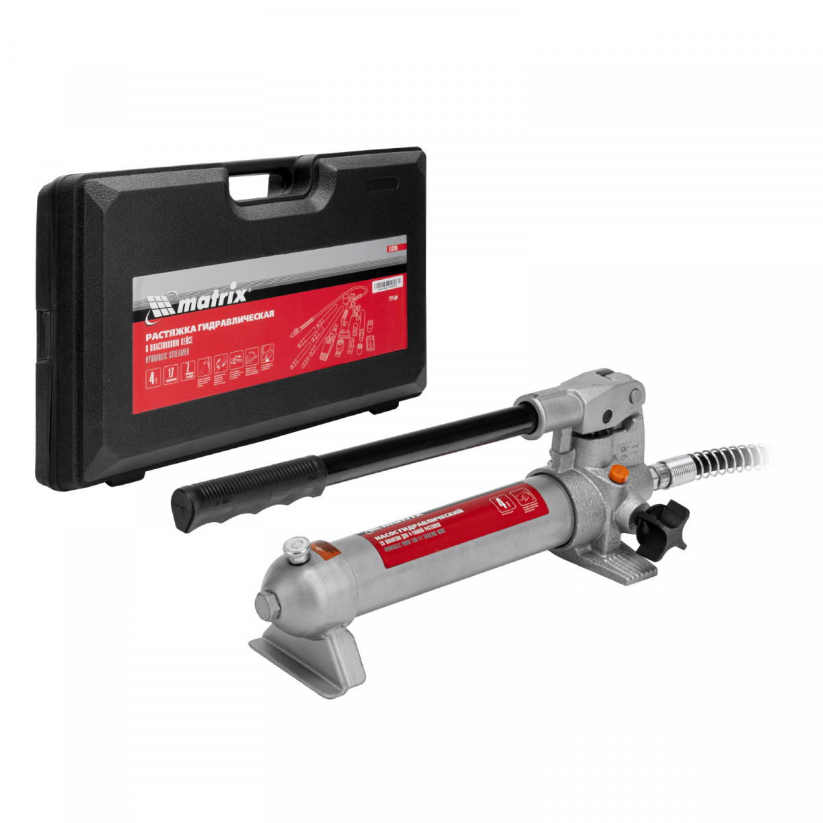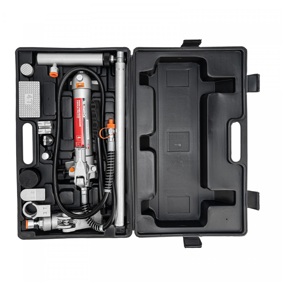 Растяжка гидравлическая, 4 т, набор из 17 предметов, 7 сменных насадок, в пластиковом кейсе Matrix