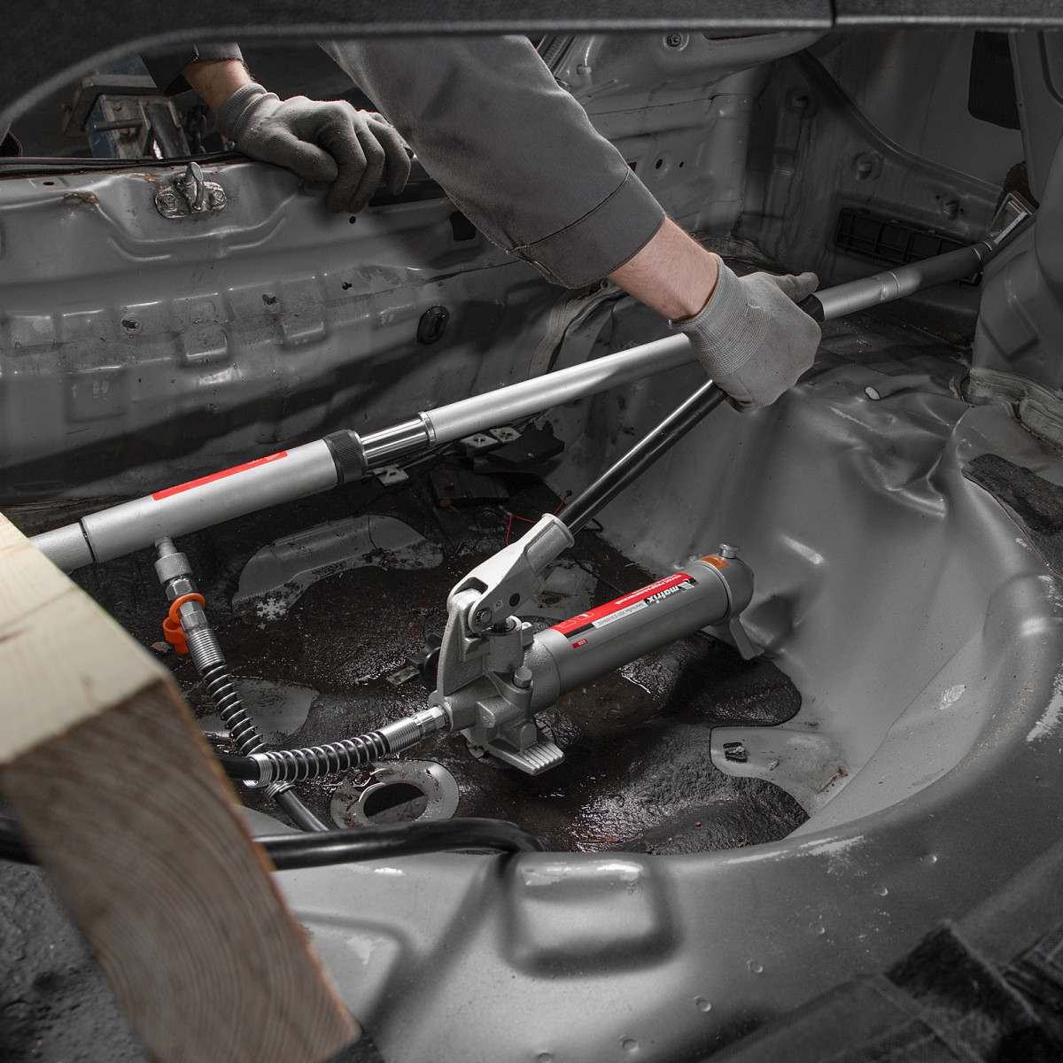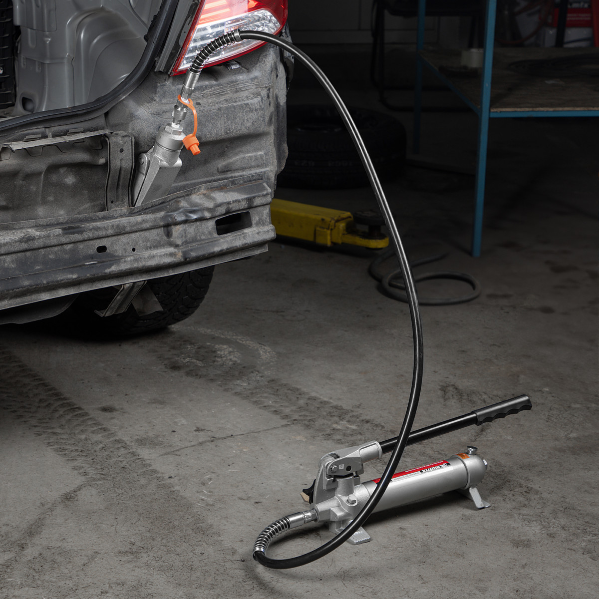 Гидравлическая растяжка Matrix 513345, 4 т, входит в набор из 17 предметов — гидронасоса, цилиндра, удлинителя, опорной площадки, адаптера и 7 сменных насадок в пластиковом кейсе. Позволяет точечно прилагать усилие до 4 тонн и используется для восстановления геометрии металлических изделий. Будет полезен для выполнения кузовных работ и рихтовки металлоконструкций. В комплект входят насадки различной формы, в том числе предназначенные для работы в труднодоступных местах, воздействия на конструкции с углами или разведения близко расположенных элементов. Можно выбрать оптимальную насадку в зависимости от марки автомобиля, а также области и степени повреждения.