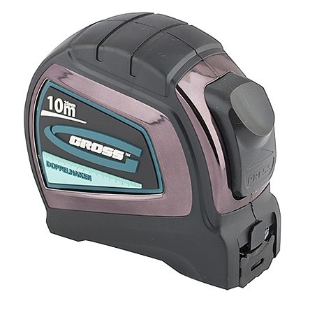 Рулетка Doppelhaken торговой марки GROSS с длиной ленты 10 м и шириной 25 мм. Сочетание ABS пластика и термопластичной резины позволяет сохранить работоспособность при резких изменениях температуры, а также при падении с высоты до 1,5 м. Измерительное полотно с двухсторонним зацепом имеет дополнительное покрытие нейлоном, защищающее металлическое полотно от истирания и воздействия окружающей среды. Возвратная пружина из углеродистой стали обладает необходимой упругостью и долговечностью. Рулетка имеет автоматическую фиксацию измерительного полотна, что обеспечивает дополнительное удобство в работе.