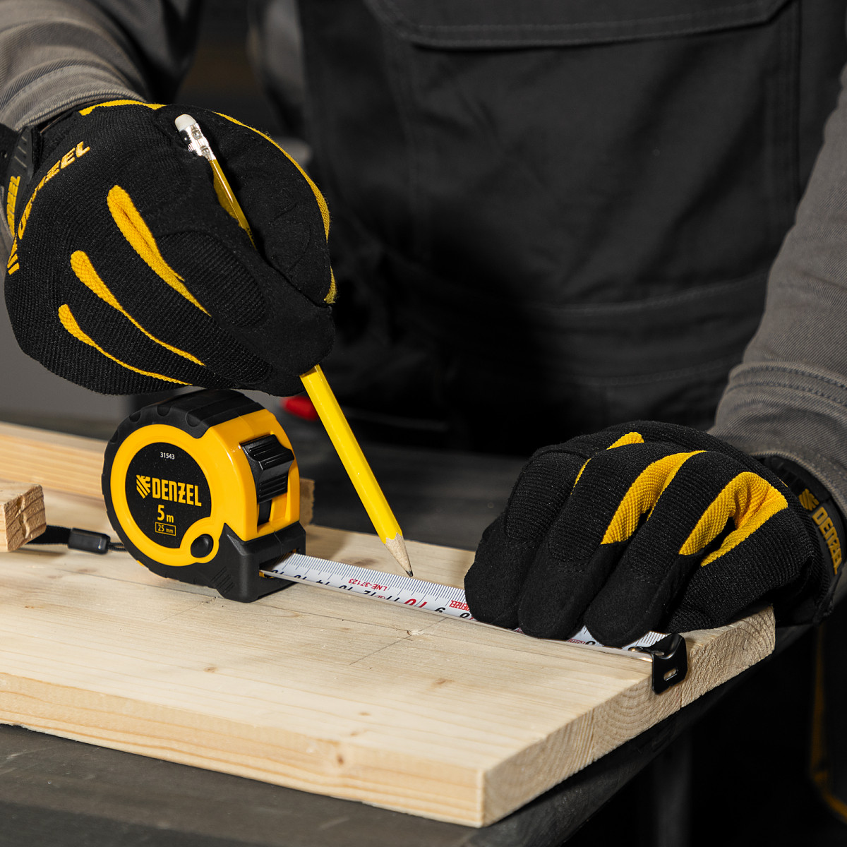 Рулетка 5м х 25мм, двухкомп. корпус, кнопка-пауза Denzel
