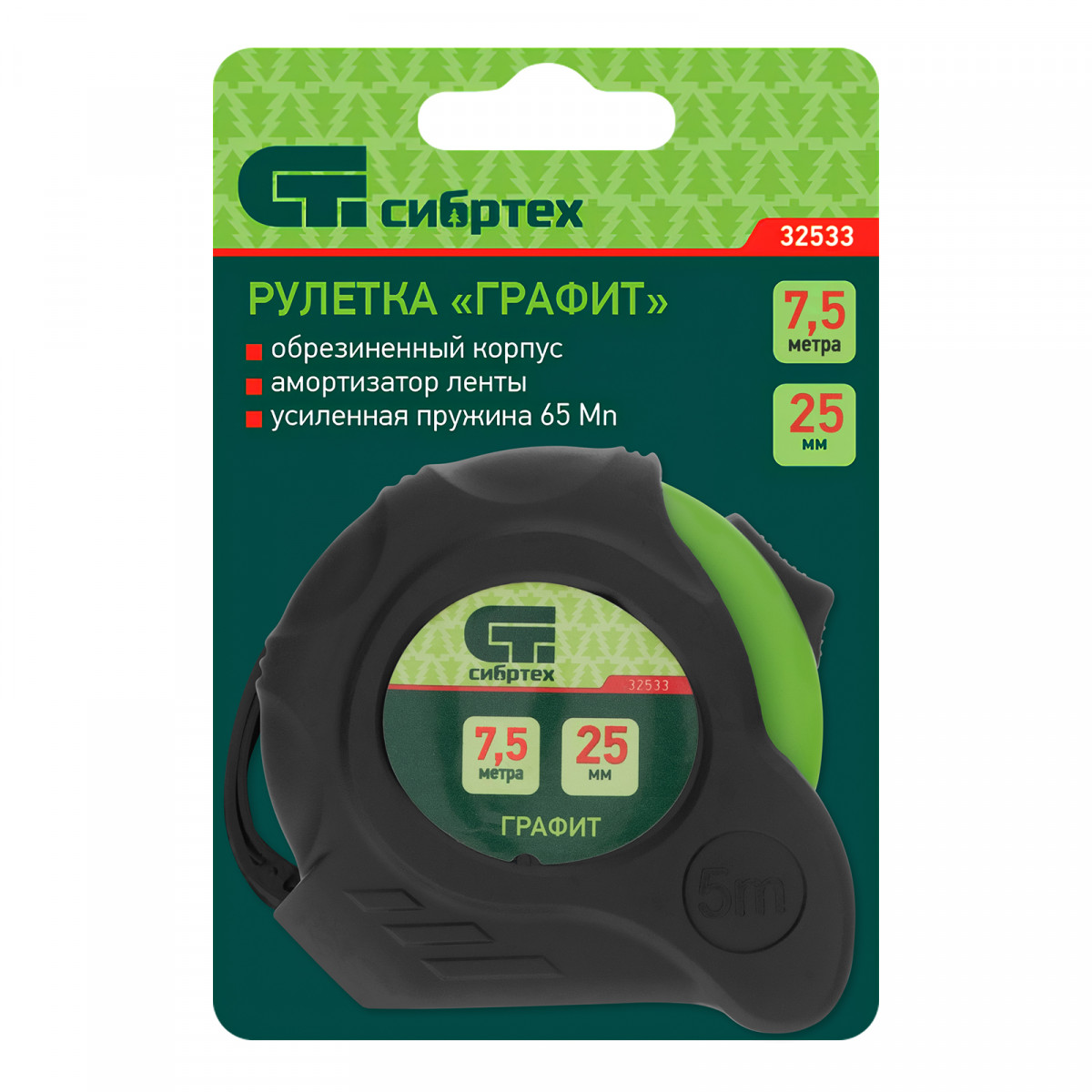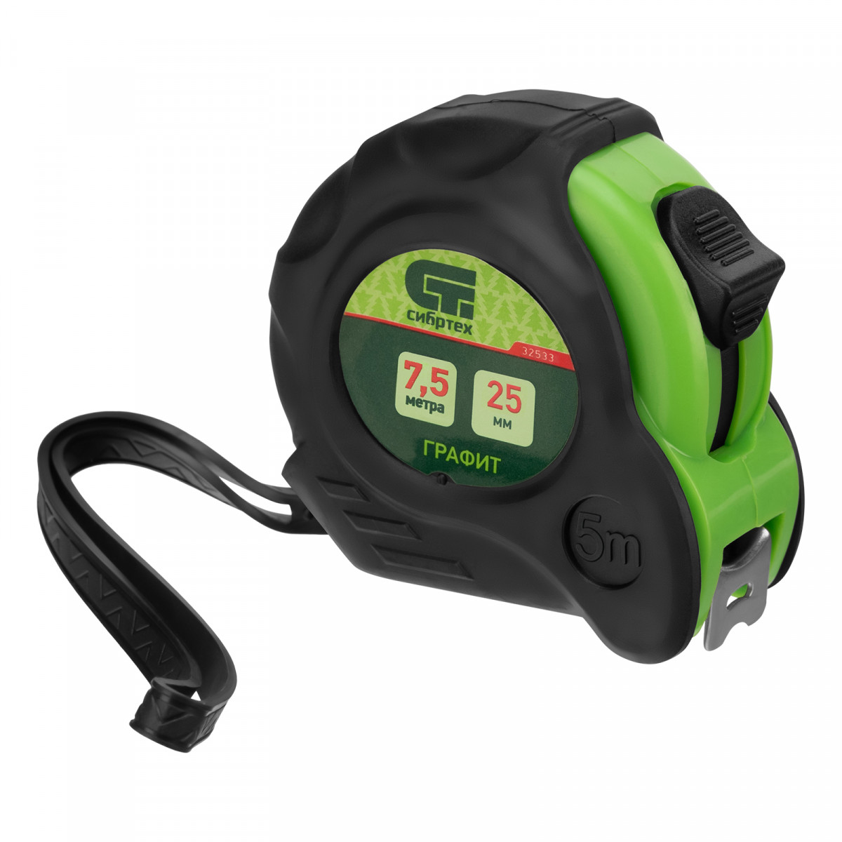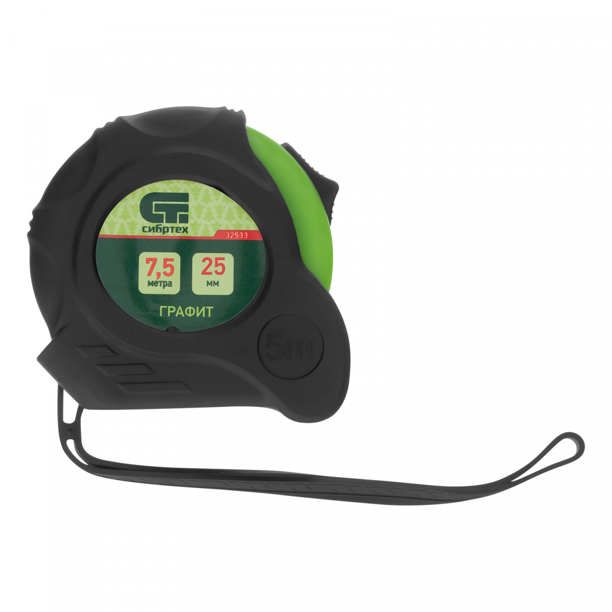 Рулетка Графит,обрезиненный корпус,амортизатор,7,5 м х 25 мм Сибртех