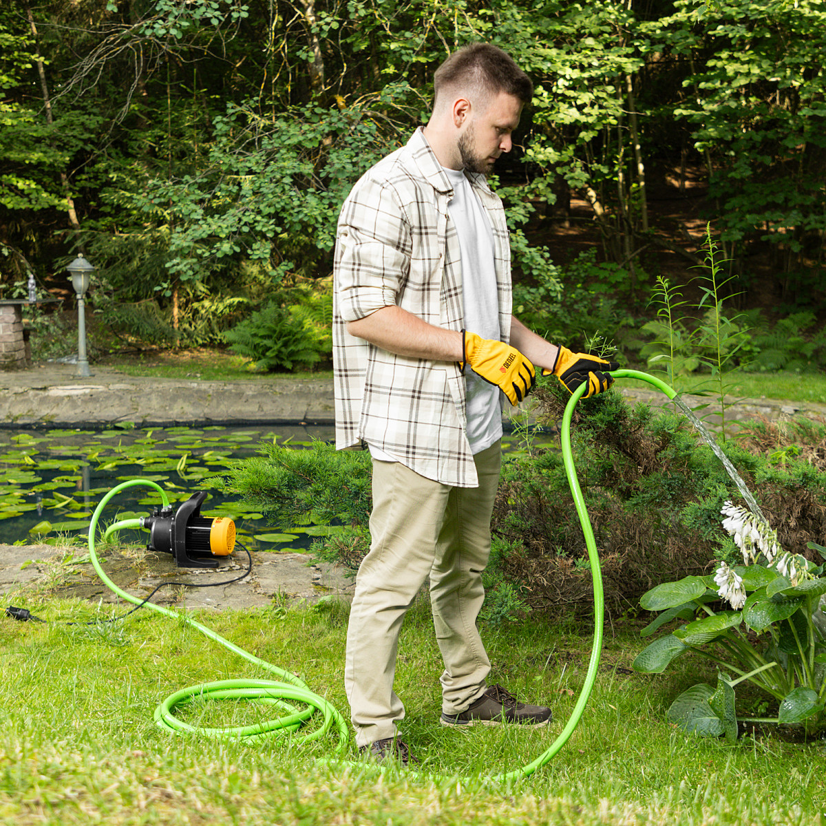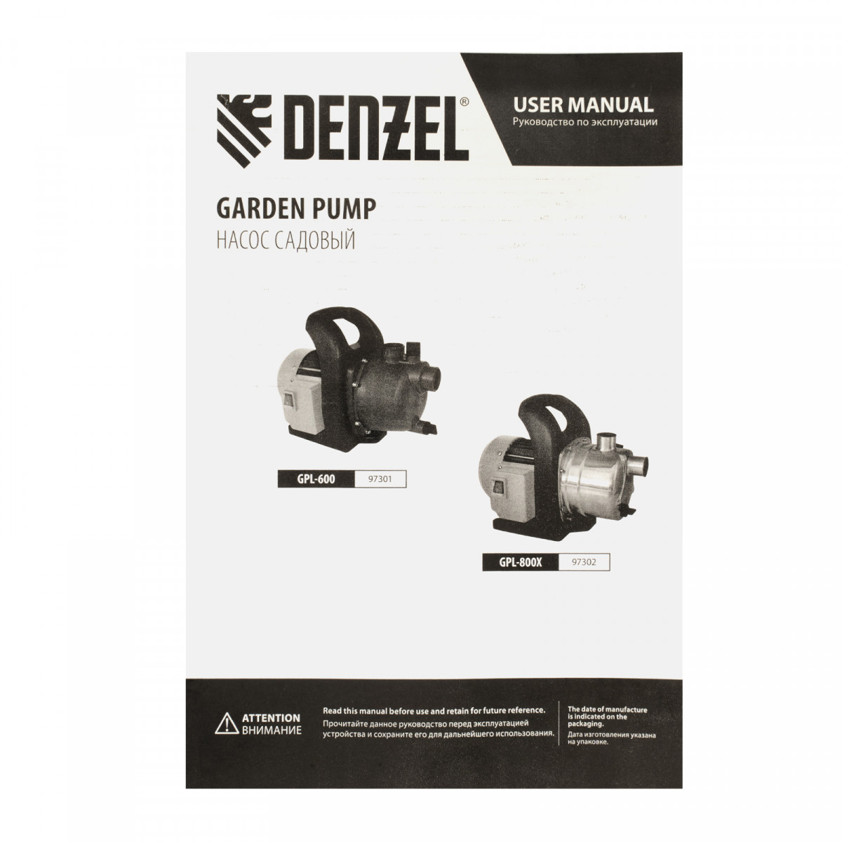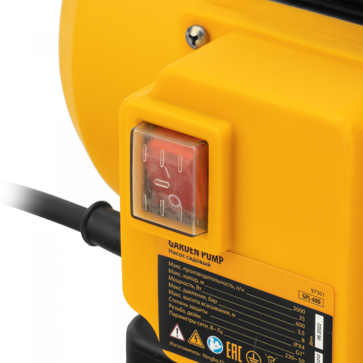 Садовый поверхностный насос GPL600, 600 Вт, 3000 л/ч, подъем 35 м, пластик Denzel