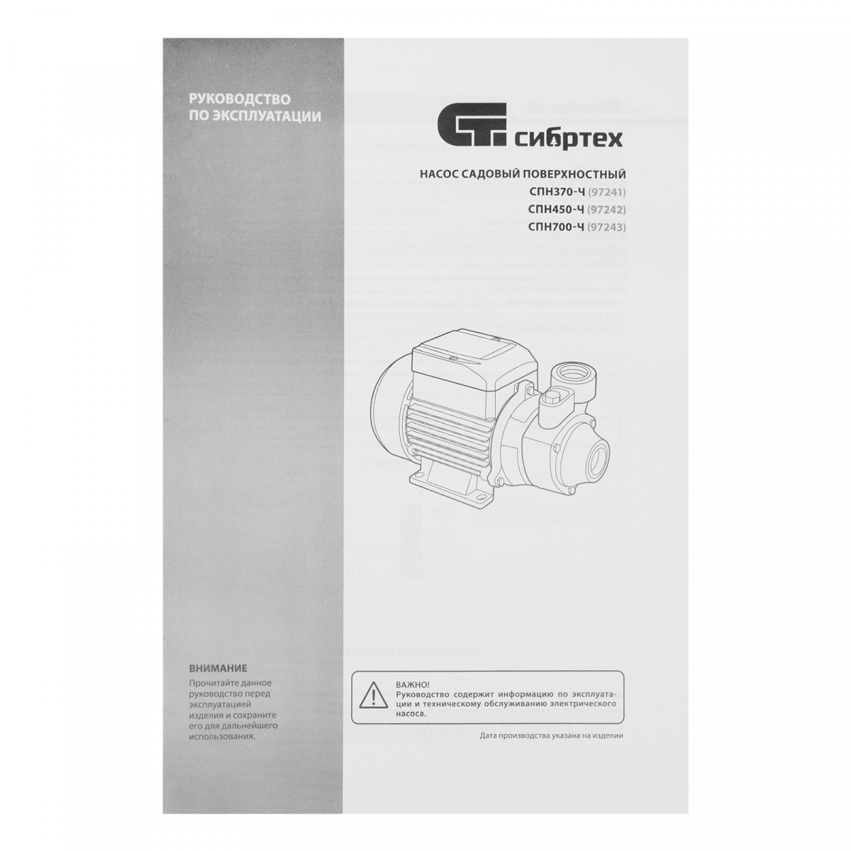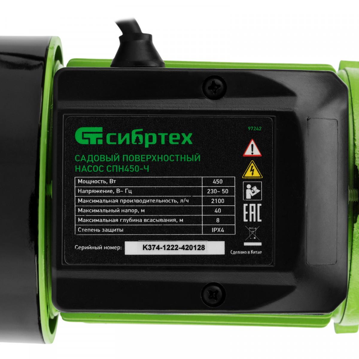 Садовый поверхностный насос СПН450-Ч, 450 Вт, напор 40 м, 2100 л/ч, чугун Сибртех