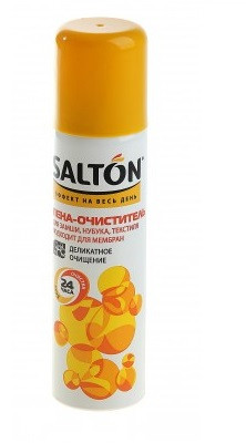 Пена-очиститель Salton "Универсальная" эффективно очищает изделия из замши, нубука, гладкой кожи и текстиля от загрязнений и подготавливает поверхность изделия к дальнейшему уходу.