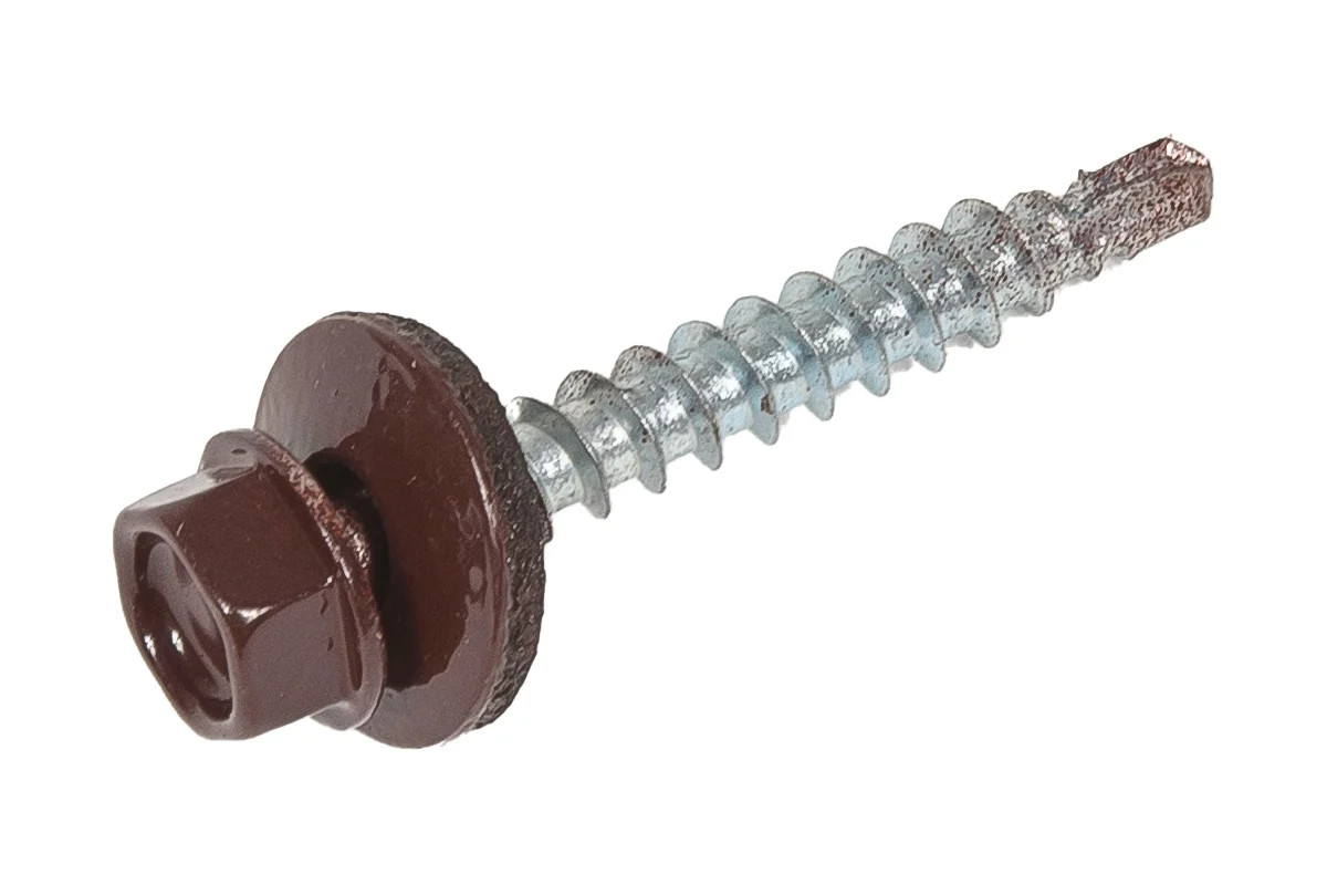 Саморез 4,8*35 сверло,гол.шестигр.с шайбой, RAL 8017 (Шоколадно-коричневый)Pront
