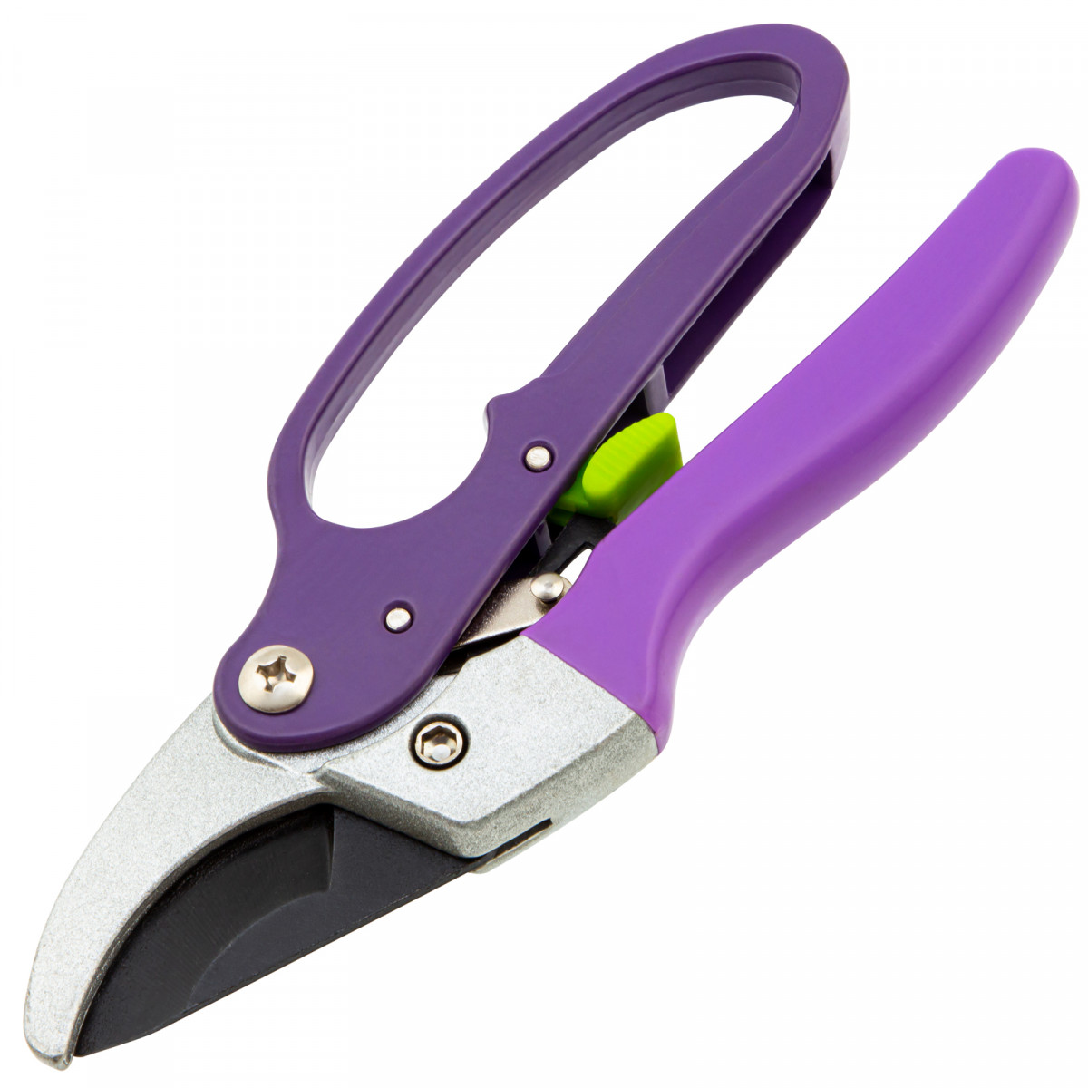 • Безопасность — гарда на нижней рукоятке защищает пальцы от травм, фиксатор удерживает лезвия в сомкнутом положении во время хранения и транспортировки.