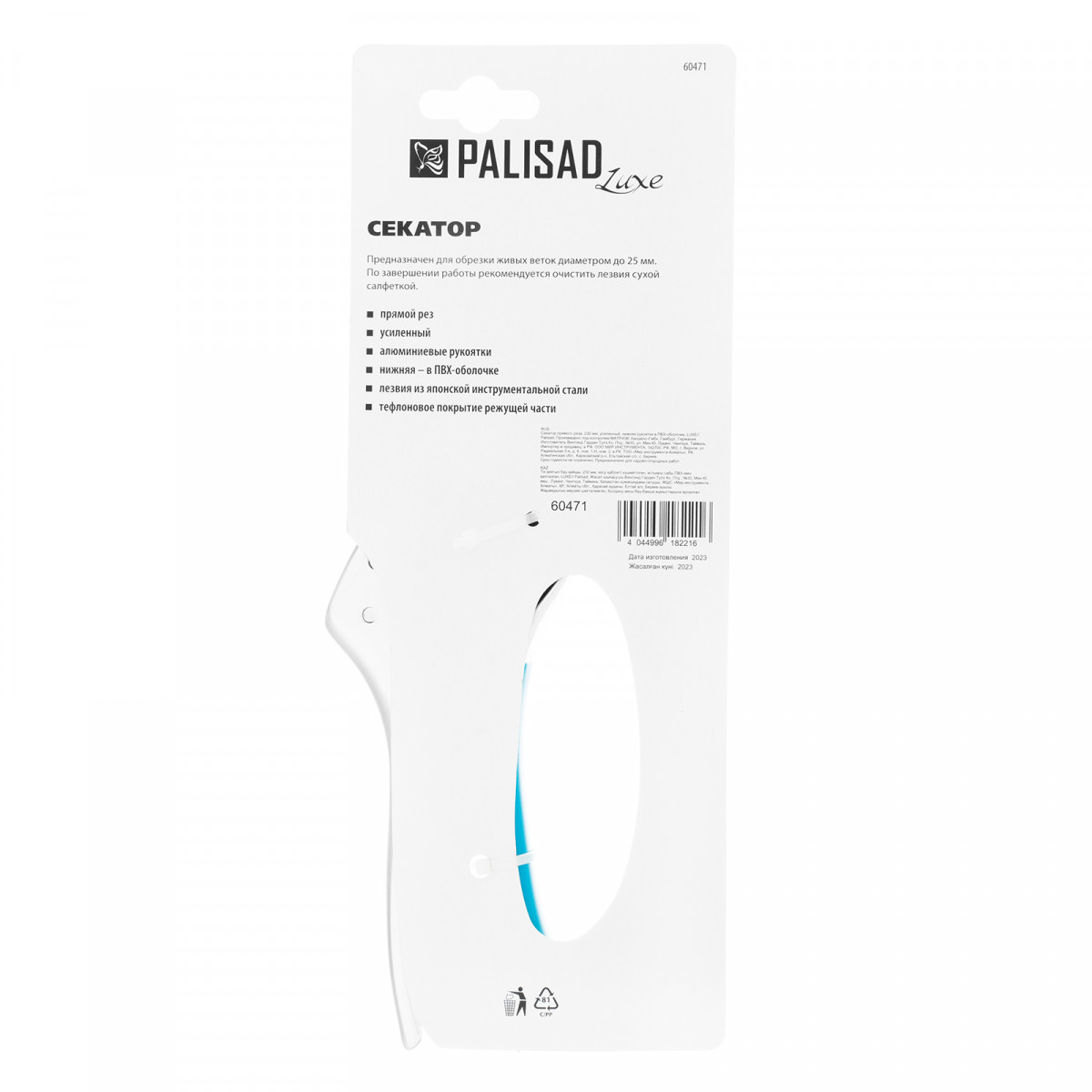 Усиленный секатор прямого реза Palisad LUXE 60471 длиной 230 мм, с нижней рукояткой в ПВХ-оболочке, — инструмент, позволяющий срезать живые ветки толщиной до 25 мм. Срез получается чистым и ровным, поскольку лезвия движутся в параллельных плоскостях. Вред для растения при обрезке минимален. Секатор легко справляется с толстыми ветками благодаря тефлоновому покрытию режущего лезвия и увеличенному шарниру, усиливающему сжатие на 10%. Посредством винта можно регулировать плотность примыкания лезвий. Инструмент будет полезен на дачном участке.