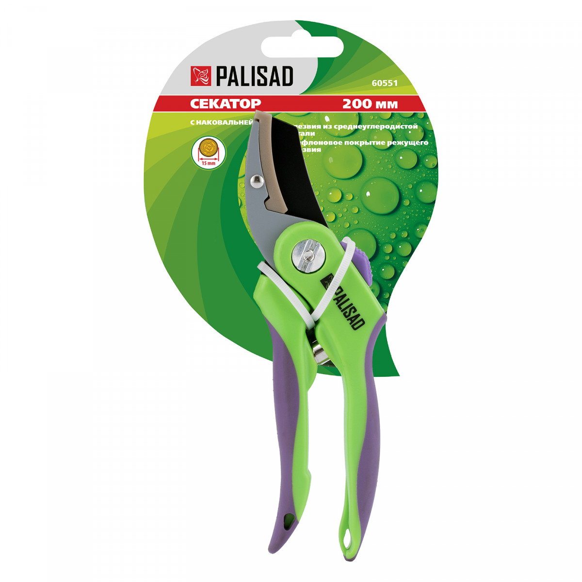 Секатор с наковальней Palisad 60551 длиной 200 мм, с двухкомпонентными рукоятками, — инструмент для срезания сухих и увядших веток толщиной до 15 мм. Благодаря тефлоновому покрытию лезвие легко и чисто отсекает ветку, при этом обрезка является максимально щадящей для растения. Опорная наковальня помогает фиксировать ветку, облегчая рез. Плотность смыкания лезвия и наковальни можно отрегулировать при помощи винта. Инструмент будет полезен для ухода за растительностью на даче и в саду.