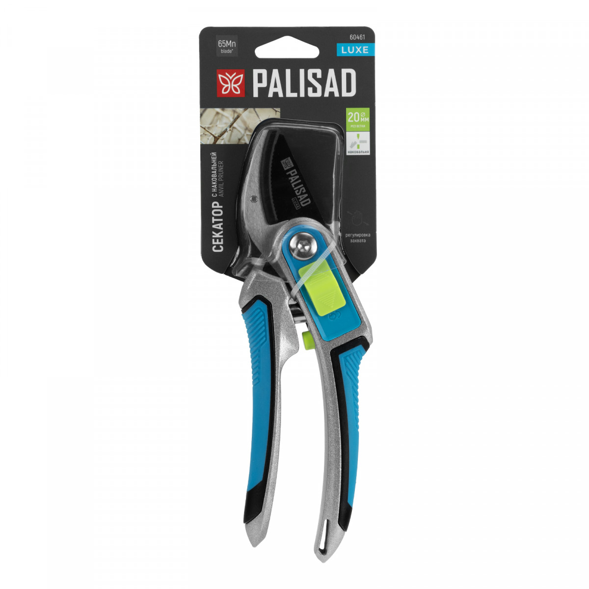 Секатор с наковальней Palisad LUXE 60461 длиной 215 мм, с регулировкой захвата и трехкомпонентными рукоятками, — инструмент для обрезки сухих веток диаметром до 20 мм. Тефлоновое покрытие режущего лезвия уменьшает трение, что повышает эффективность реза. Инструмент пригодится садоводам и огородникам.