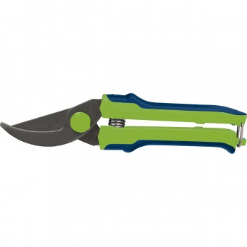 Секатор с прямым резом, двухкомпонентными рукоятками и петлевым фиксатором, расположенным на конце одной из рукояток. Предназначен для выполнения работ по уходу за садом. Рекомендуется для обрезки живых веток диаметром до 15 мм. Секатор изготовлен из стали 40Х и имеет оксидированное покрытие для защиты от коррозии. Режущее лезвие остро заточено.