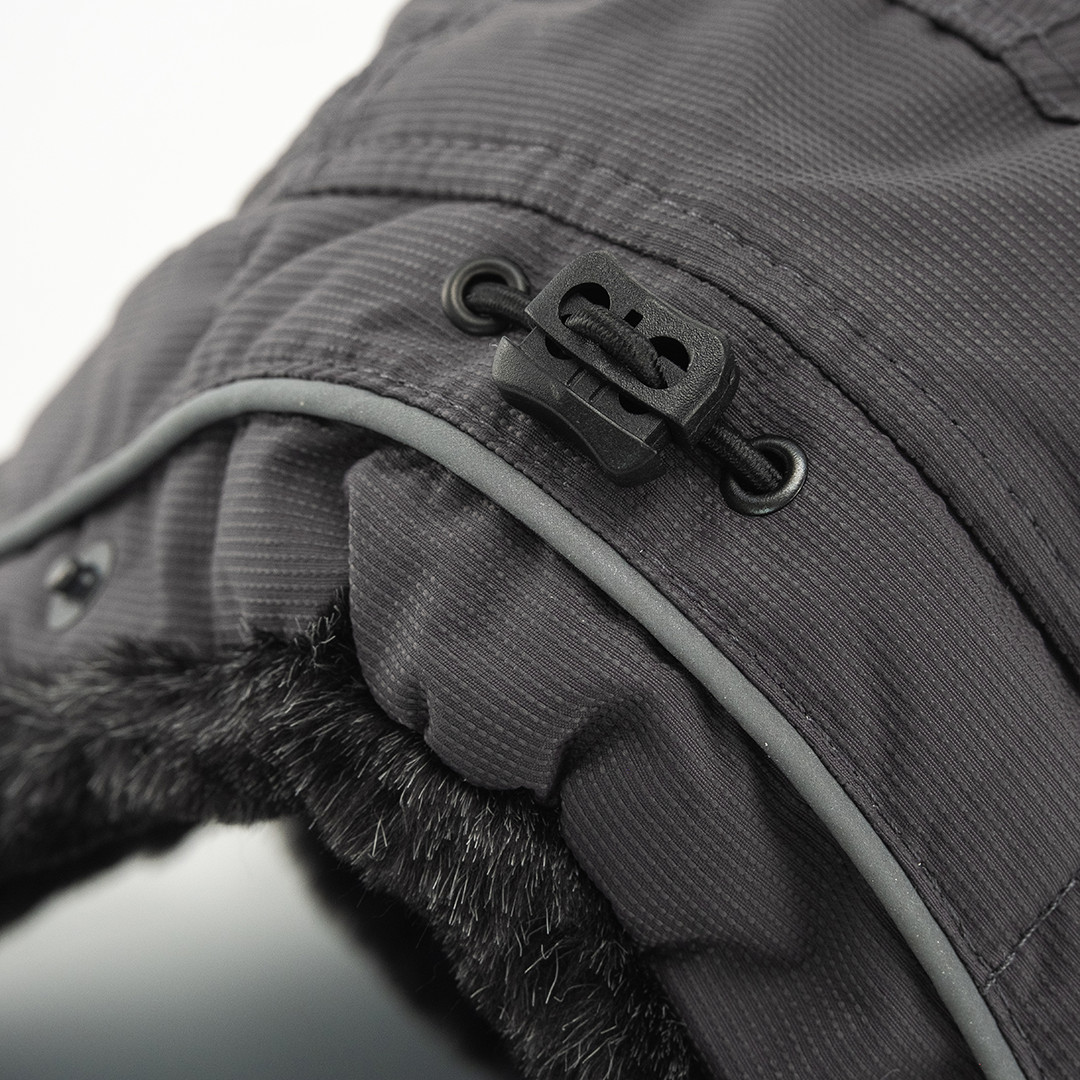 Водоотталкивающая ткань "Мембрана Breathable 3K" обеспечивает защиту от влаги и сохраняет тепло в шапке.