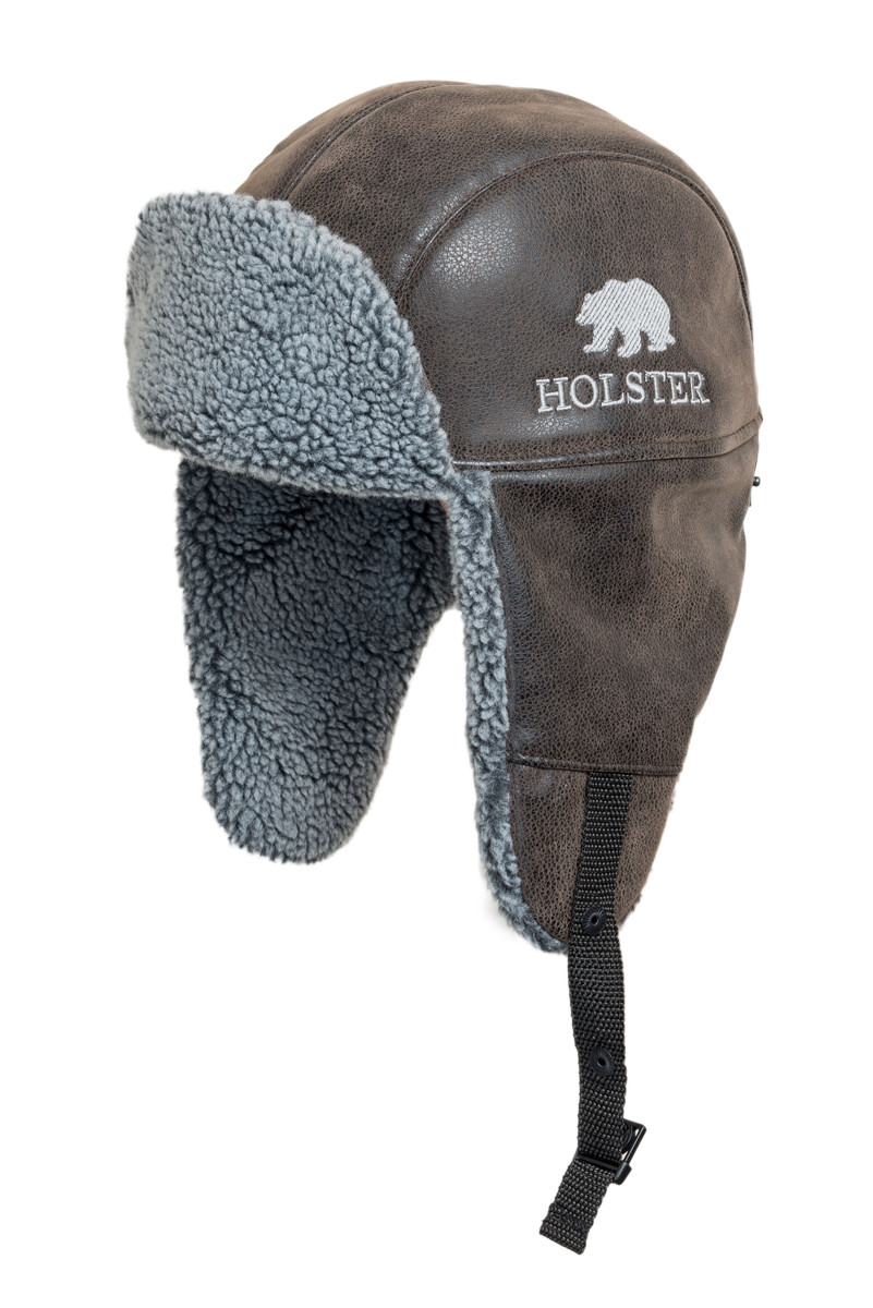 Шапка ушанка зимняя Авиатор, кож. зам коричневый Хольстер