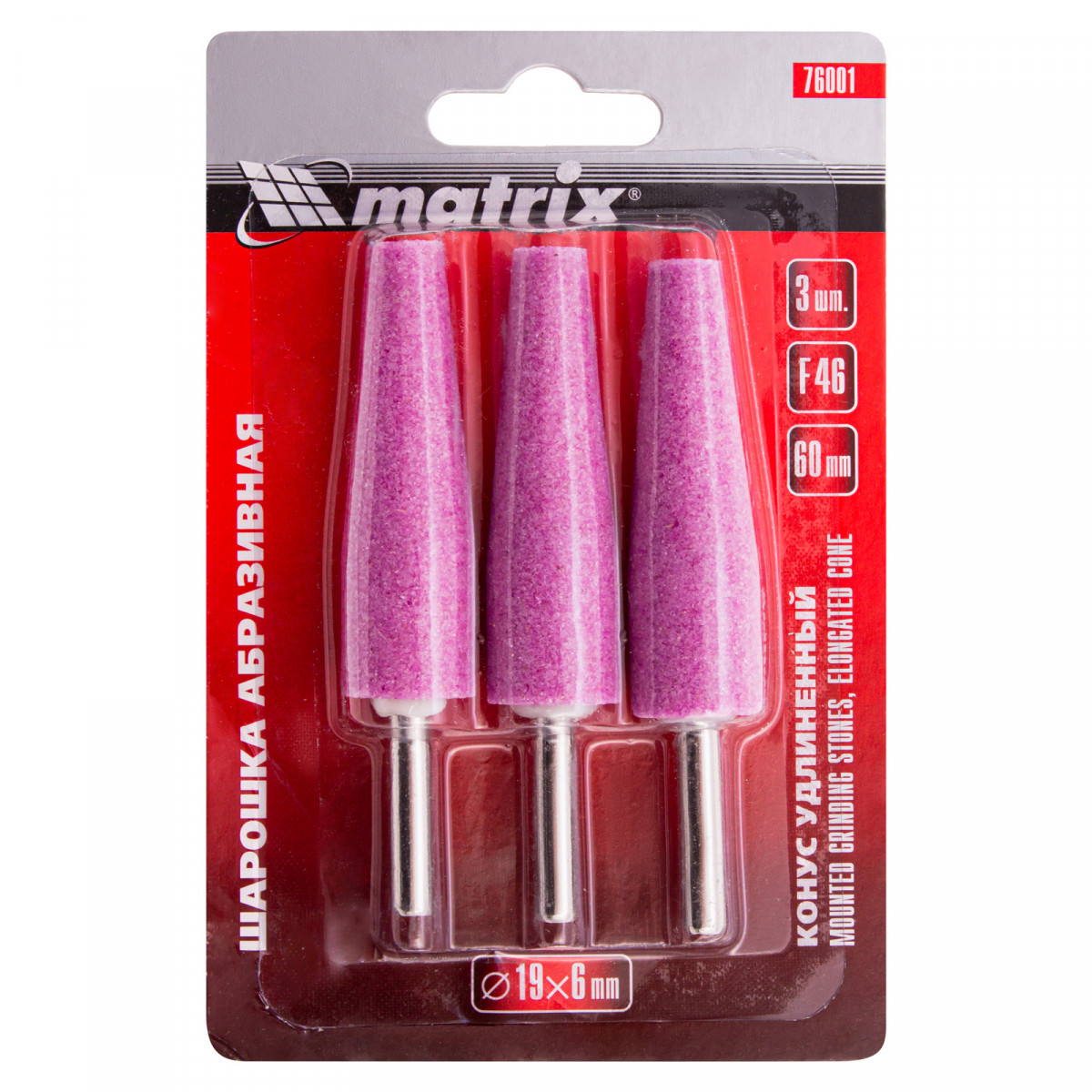 Шарошка абразивная, конус удлиненный, 19 x 60 x 6 мм, F46, 3 шт Matrix