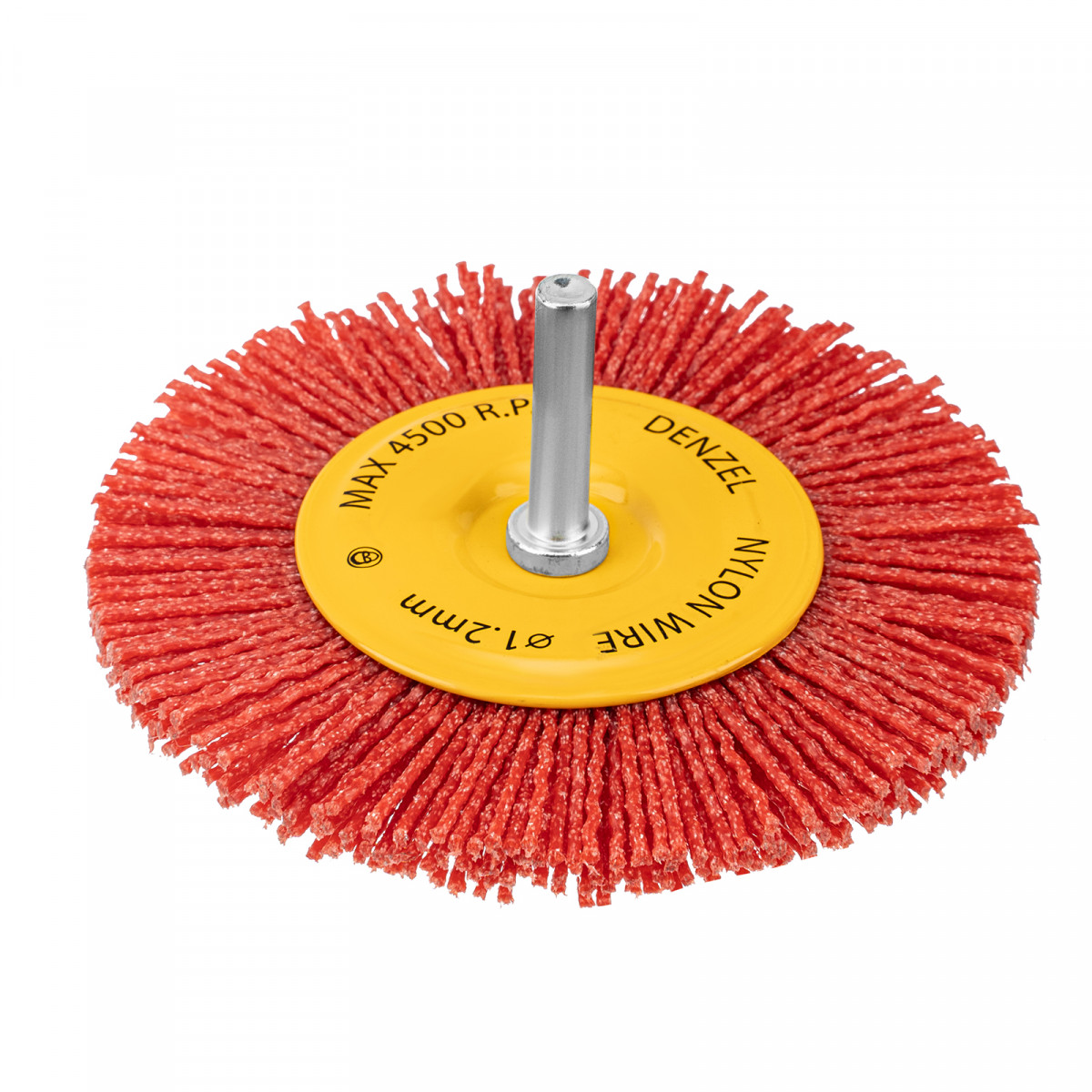 Щетка для дрели, 100 мм, Плоская, со шпилькой, нейлоновая щетина Denzel
