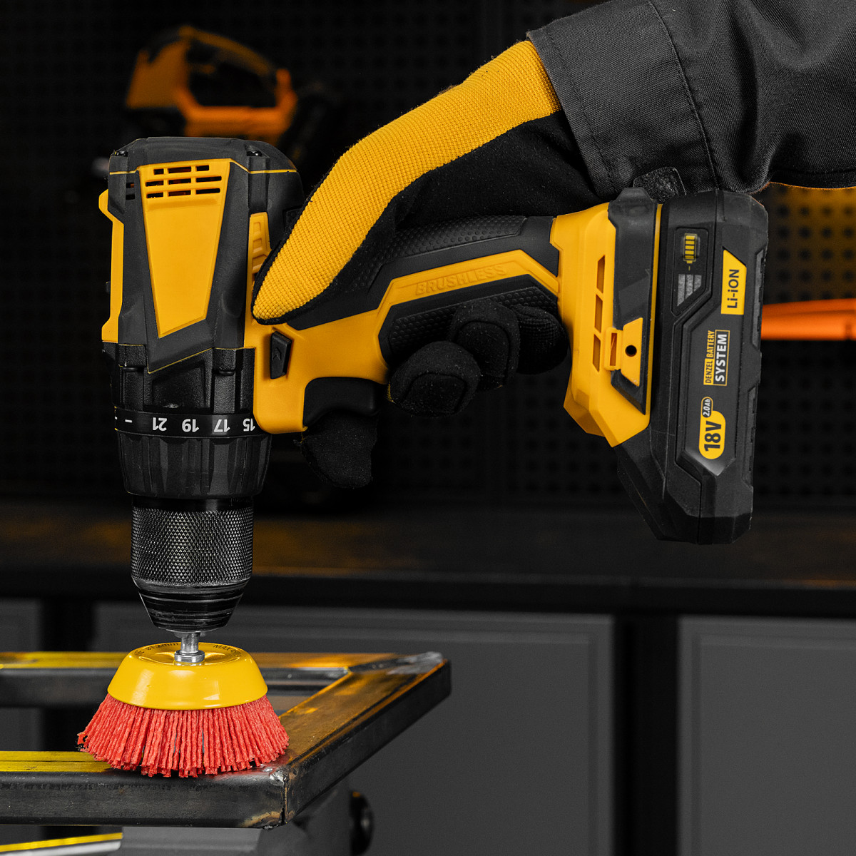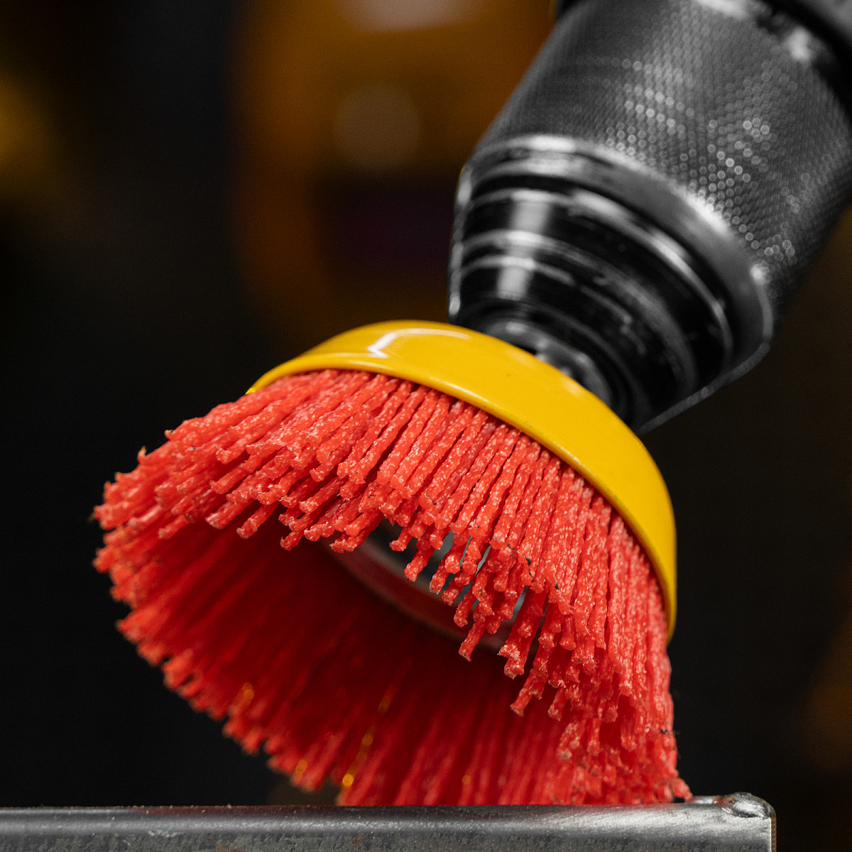 • Высокое качество обработки — в отличие от металлической, нейлоновая щетина не оставляет следов на деревянных поверхностях.