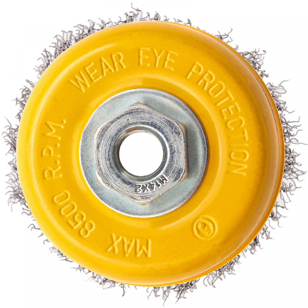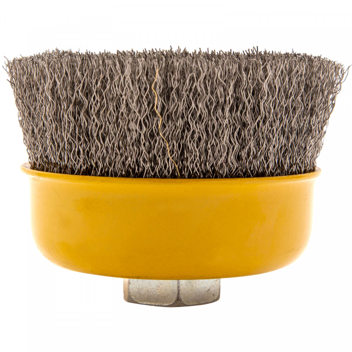 Щетка для УШМ, 100 мм, "Чашка", витая нержавеющая проволока 0.3 мм, М14 Denzel