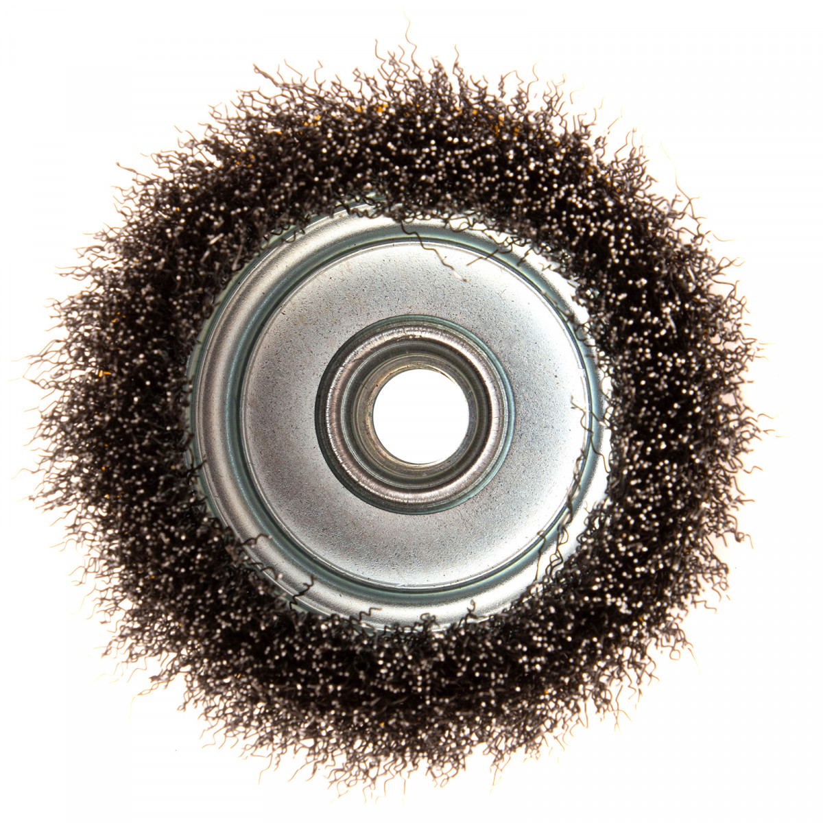 Щетка для УШМ «Чашка» Denzel 746053 с гайкой М14, диаметром 100 мм, с щетиной из витой нержавеющей проволоки диаметром 0,3 мм, позволяет быстро и аккуратно очистить металлическую, деревянную или пластиковую поверхность от незначительных загрязнений и ржавчины, а также удалить остатки лакокрасочных материалов, сделать поверхность шероховатой или матовой. Насадка предназначена для очистки плоских участков большой площади. Подходит для обработки нержавеющей стали.