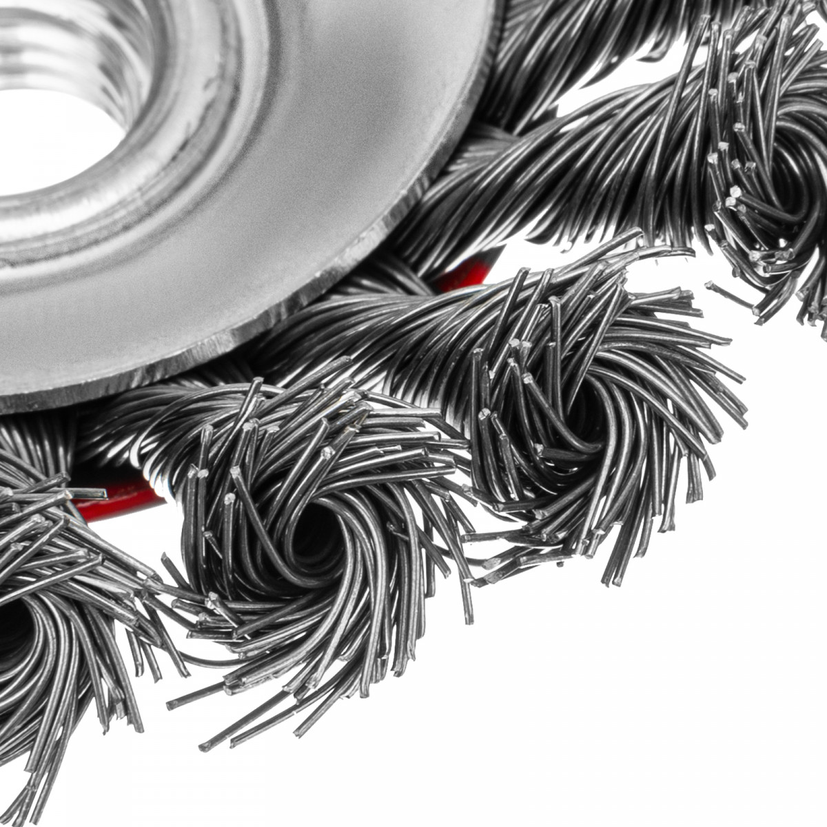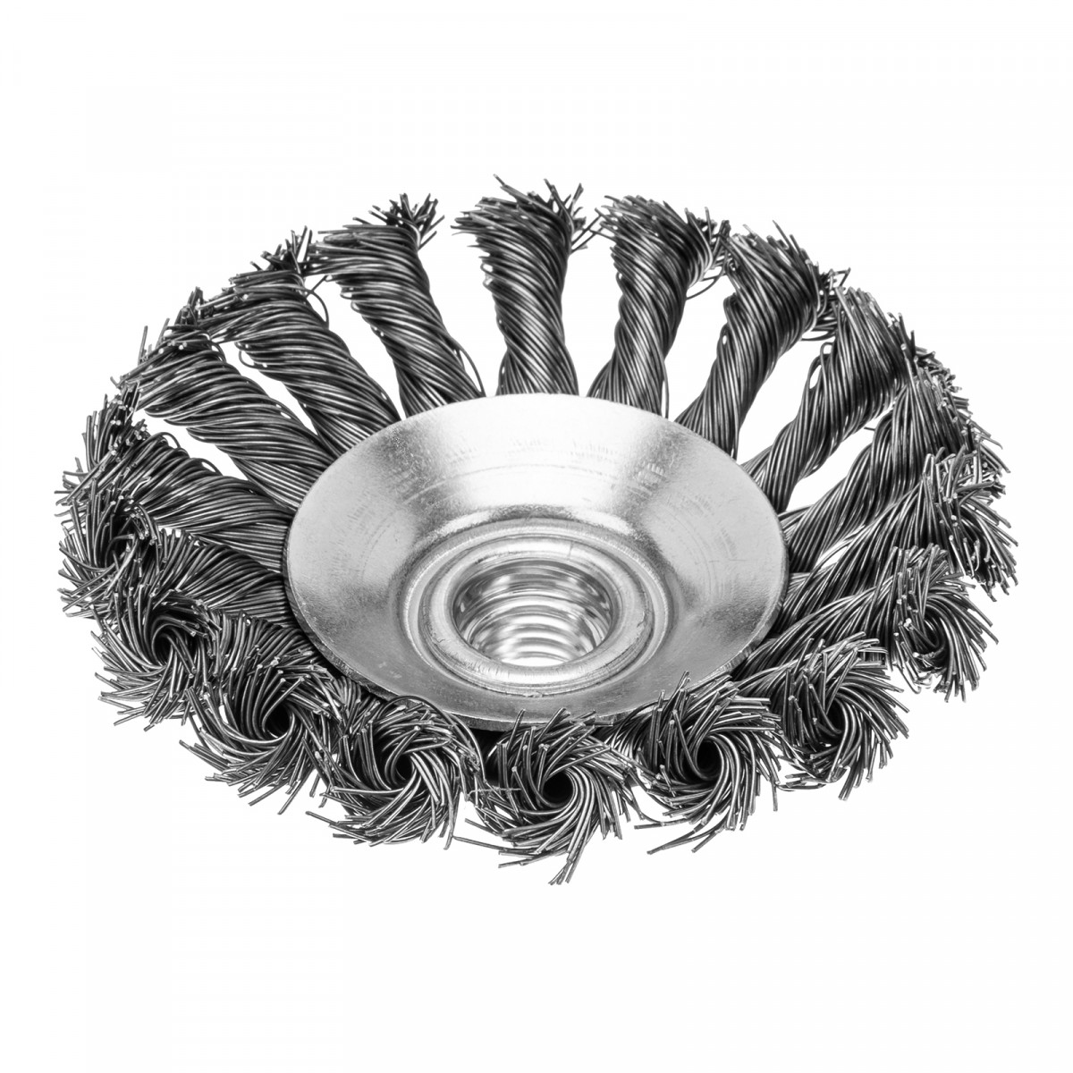 Щетка для УШМ, 100 мм, М14, "тарелка", крученая проволока 0.5 мм Matrix