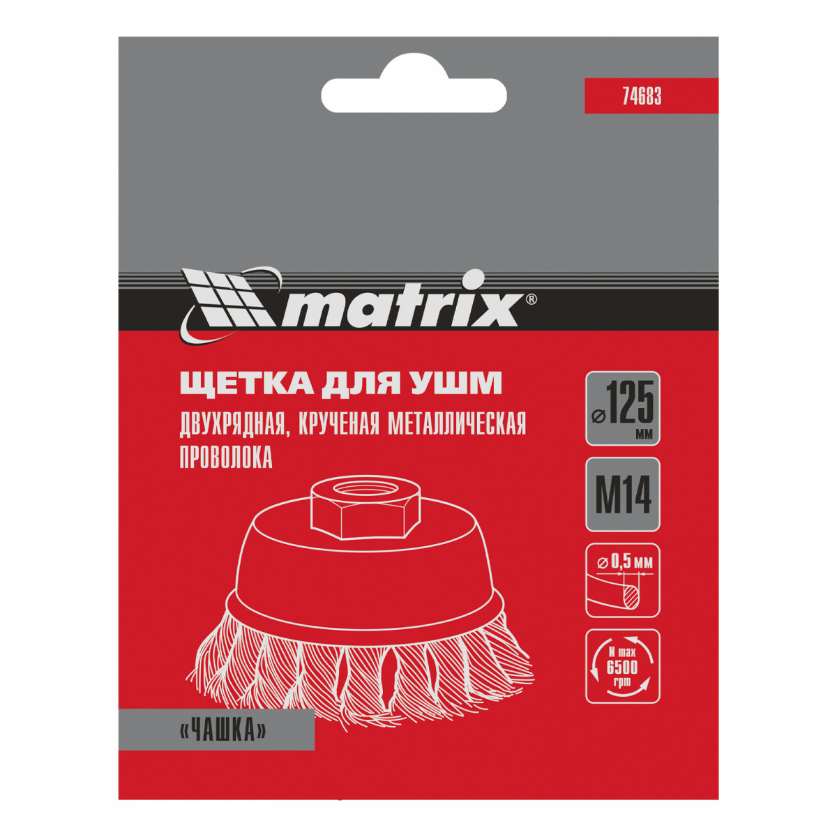 Щетка для УШМ, 125 мм, М14, "чашка", двухрядная, крученая проволока 0.5 мм Matrix