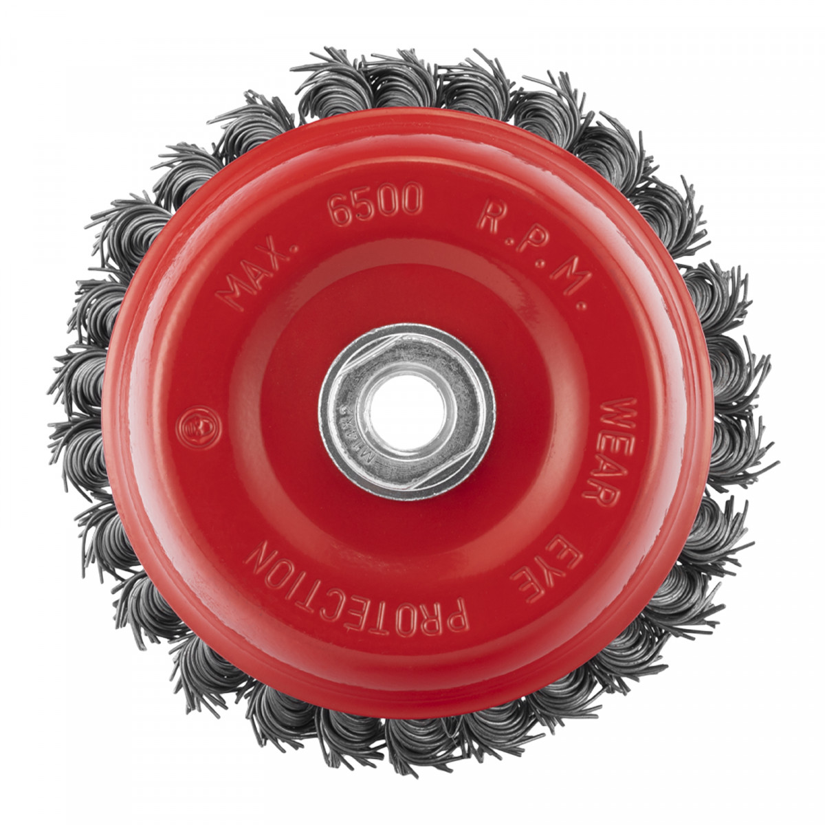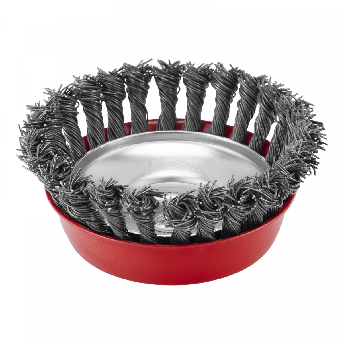 Щетка Matrix «Чашка» 74625 диаметром 125 мм, с присоединительной резьбой М14, с щетиной из крученой проволоки диаметром 0,8 мм, устанавливается на УШМ, поддерживающую работу со скоростью 6500 об/мин. Щетина предназначена для грубой (черновой) обработки поверхностей, более агрессивной по сравнению с щетиной 0,5 мм. Изделие подходит для удаления загрязнений, снятия толстого слоя ржавчины, ЛКМ, зачистки сварных швов.