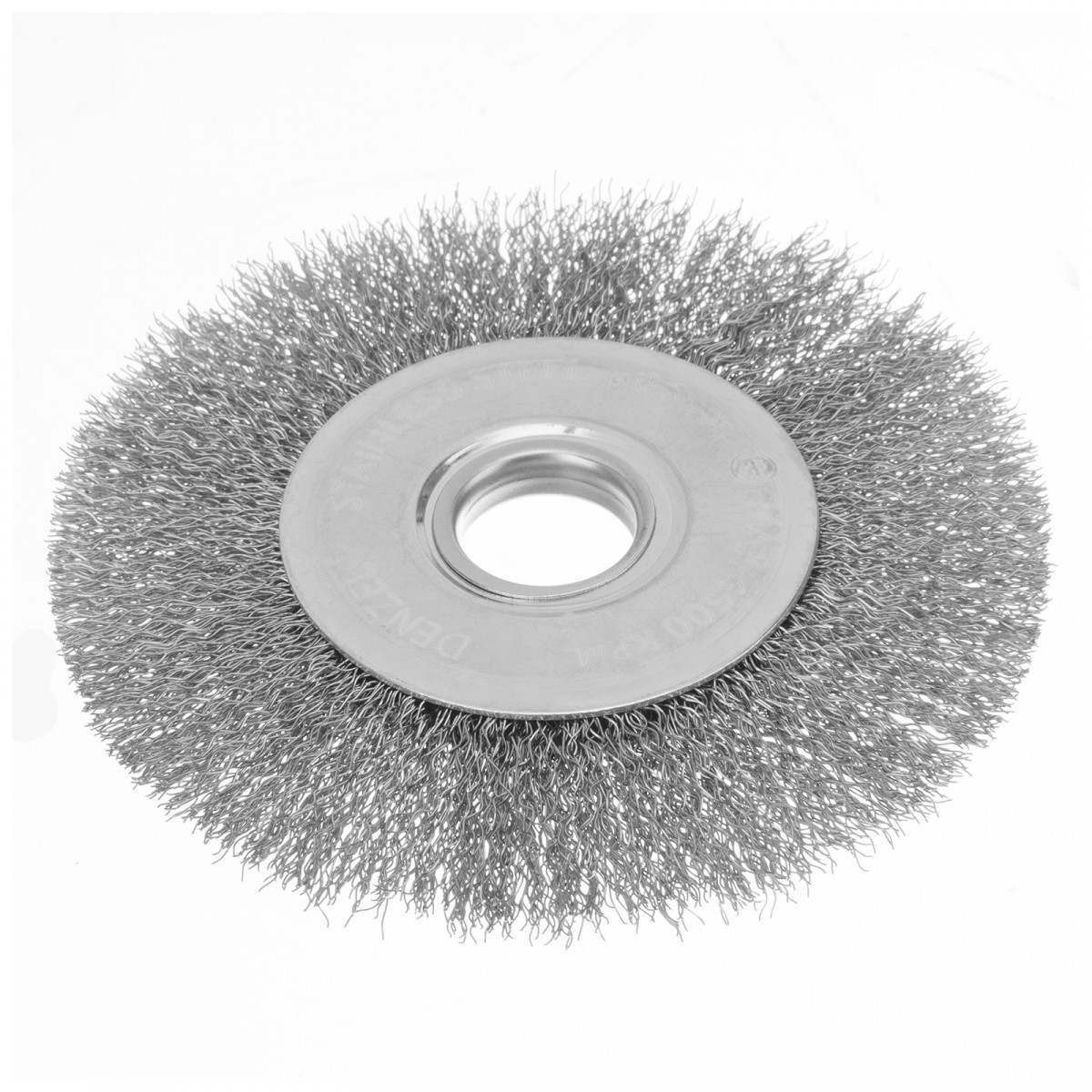 Щетка для УШМ, 125 мм, "Плоская", витая нержавеющая проволока 0.3 мм, посадка 22.2 мм Denzel