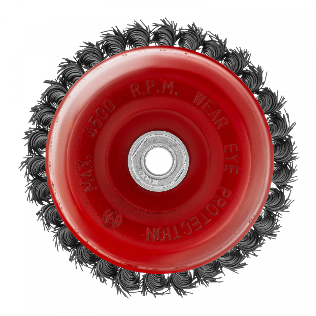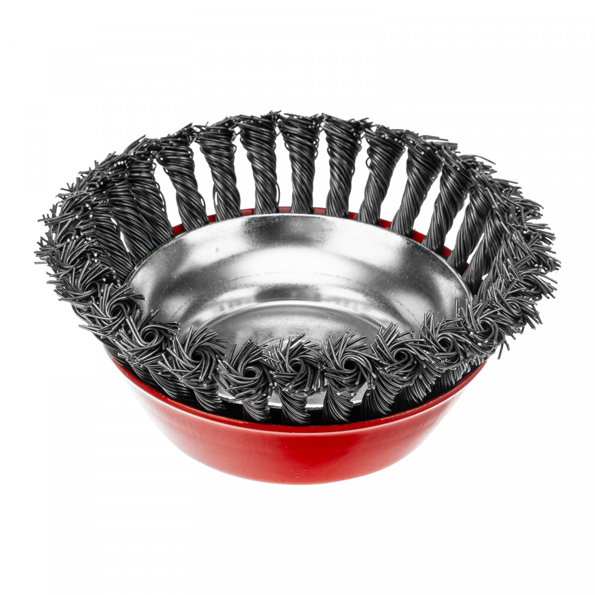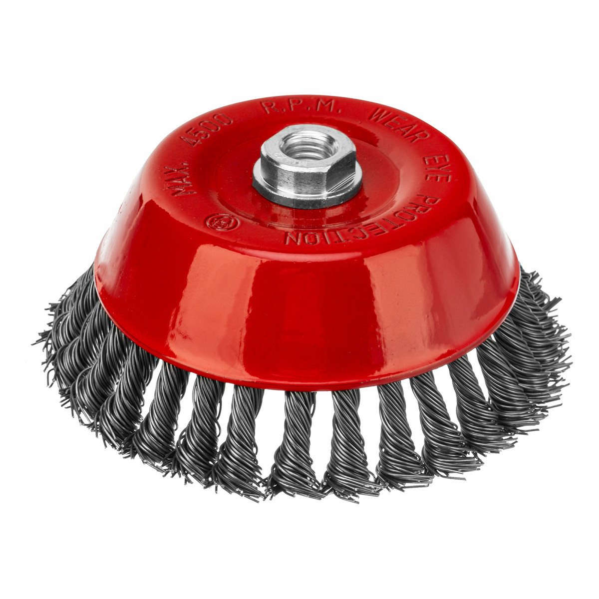 Щетка Matrix «Чашка» 74626 диаметром 150 мм, с присоединительной резьбой М14, с щетиной из крученой проволоки диаметром 0,8 мм, устанавливается на УШМ, поддерживающую работу со скоростью 4500 об/мин. Щетина предназначена для грубой (черновой) обработки поверхностей, более агрессивной по сравнению с щетиной 0,5 мм. Изделие подходит для удаления загрязнений, снятия толстого слоя ржавчины, ЛКМ, зачистки сварных швов.